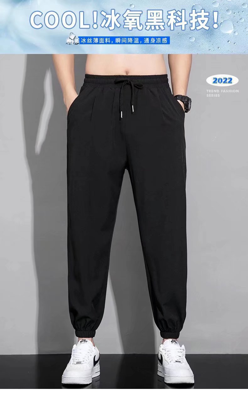 大码冰丝裤子男士夏季ins潮牌潮流百搭宽松束脚运动休闲九分长裤