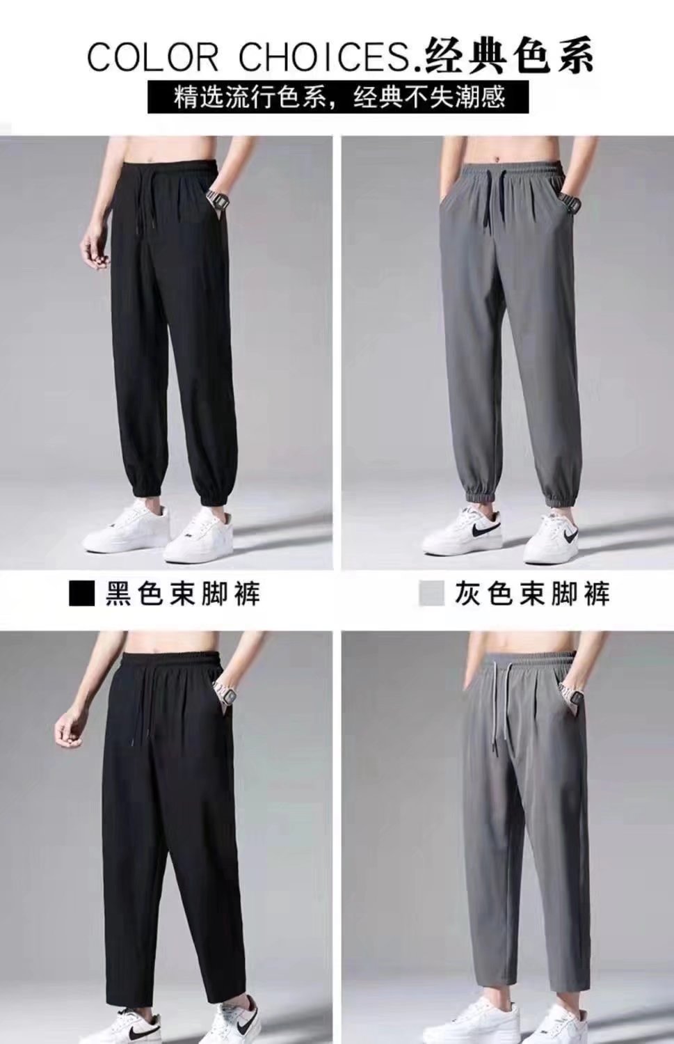 아이스 실크 바지 남자 캐주얼 스포츠 바지 느슨한 바지 빠른 건조 여름 남자 바지 2024 봄 발목 바지 남자스토어 가기