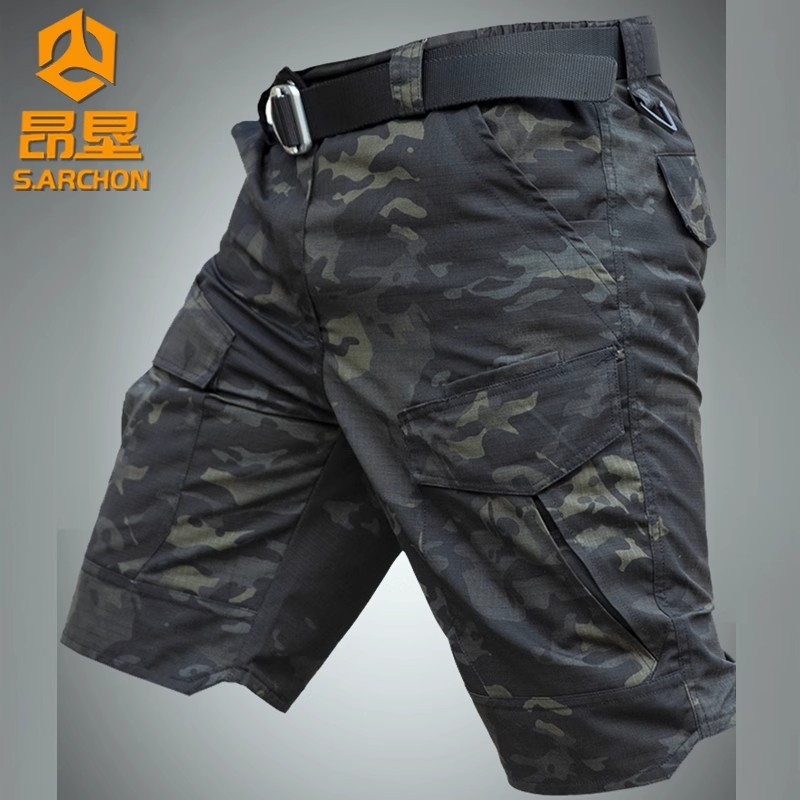 Angken 여름 전술 바지 남성용 속건성 군용 위장 반바지 멀티 포켓 야외 작업복 반바지 5부 바지 방수