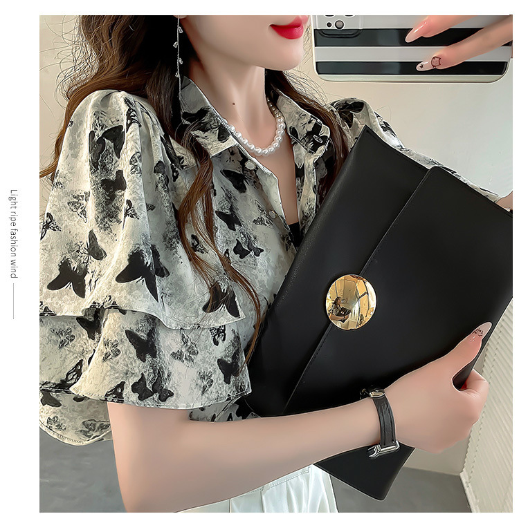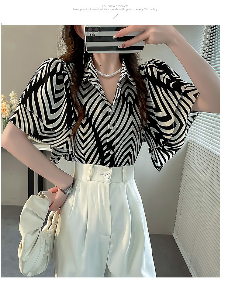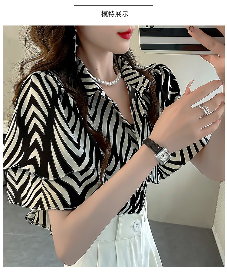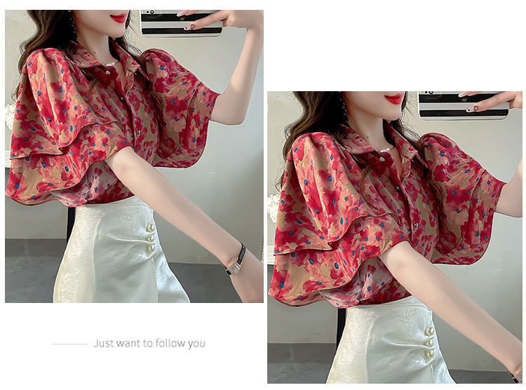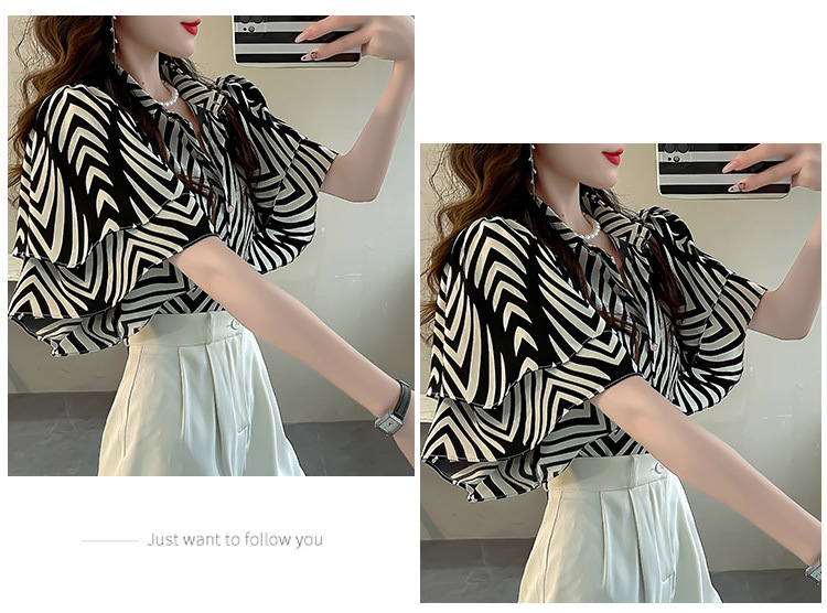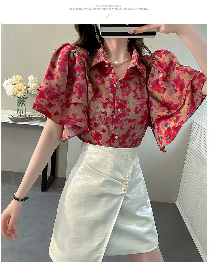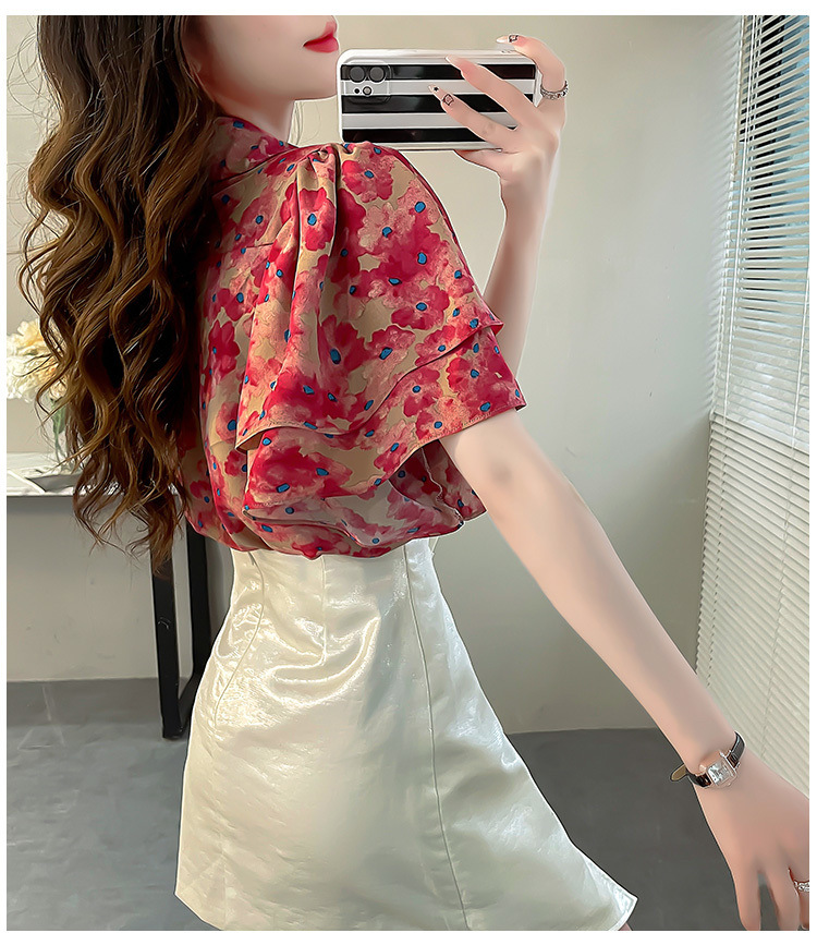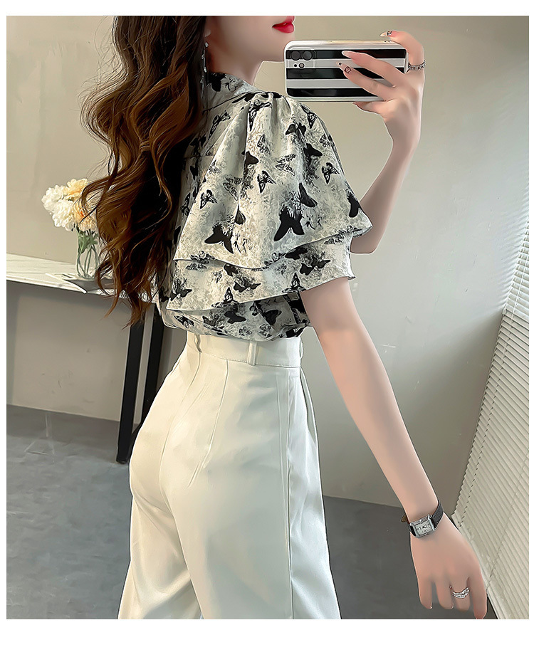 달콤한 인쇄 셔츠 2024 새로운 여성의 여름 반팔 셔츠 여성용 하이 엔드 반팔 러플 탑스토어 가기