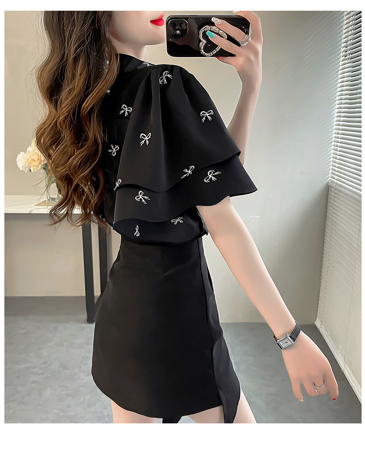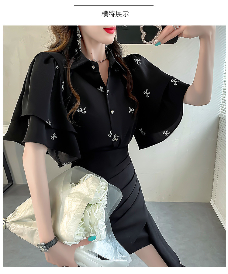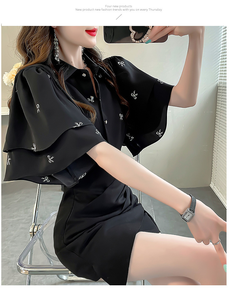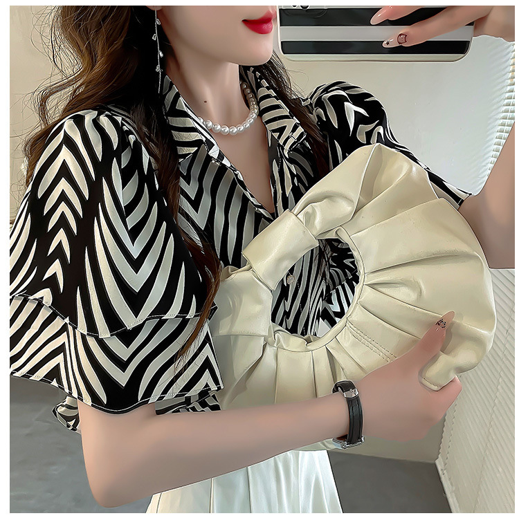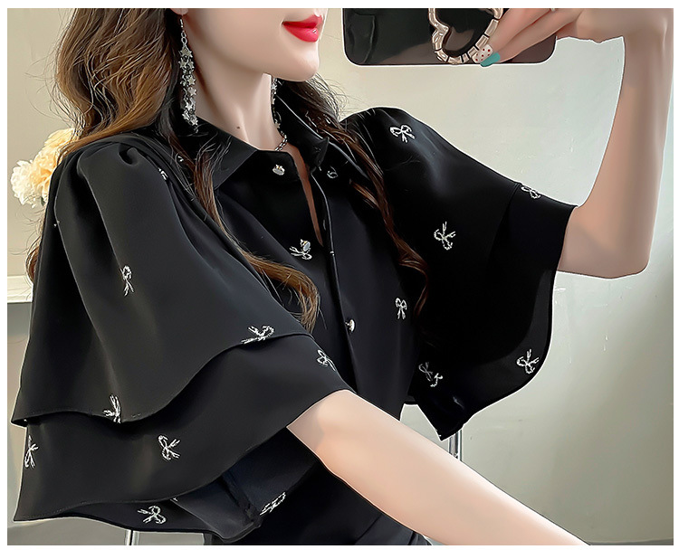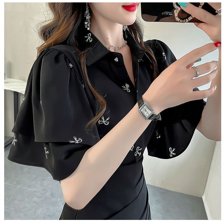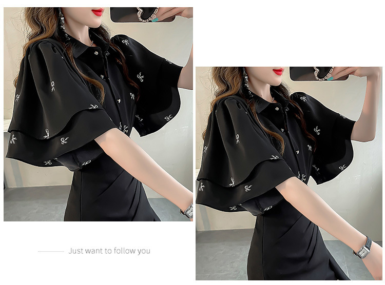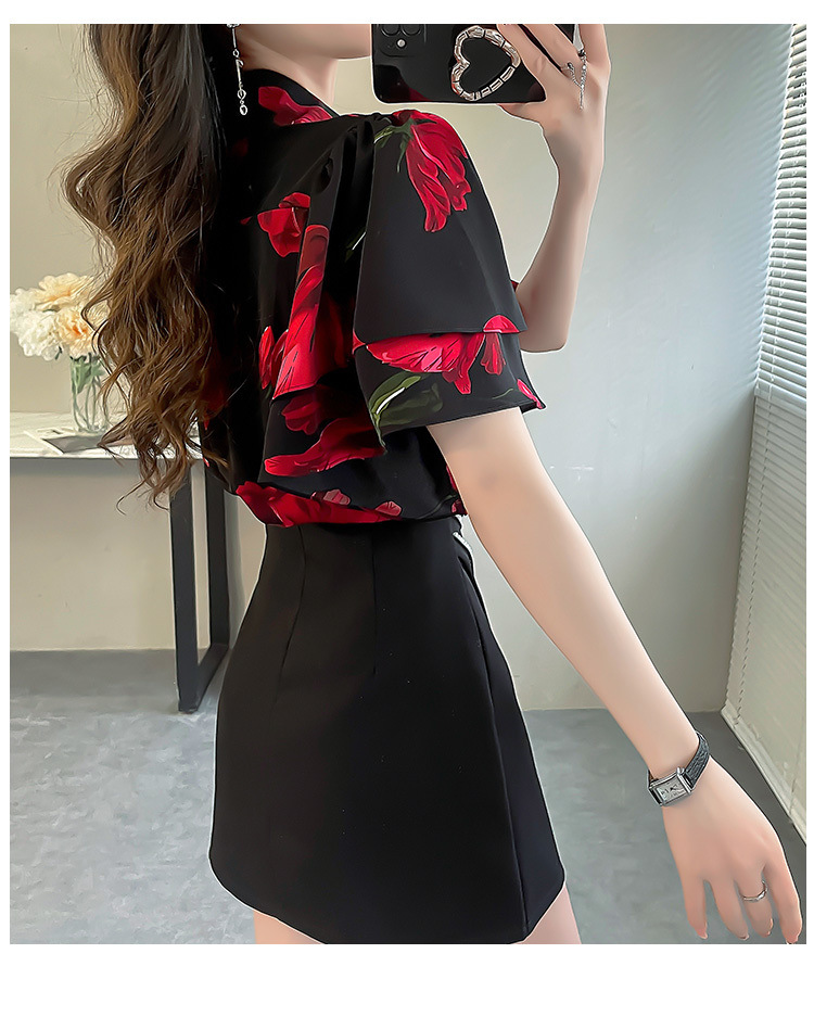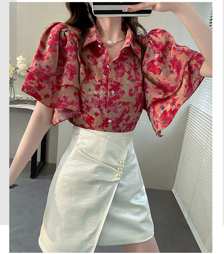 달콤한 인쇄 셔츠 2024 새로운 여성의 여름 반팔 셔츠 여성용 하이 엔드 반팔 러플 탑