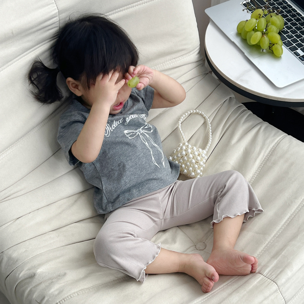 여름 여자 자른 꽃 바지 솔리드 컬러 스트레치 바지 학교 신 바지 바지 얇은 다리 소녀 꽃 바지스토어 가기