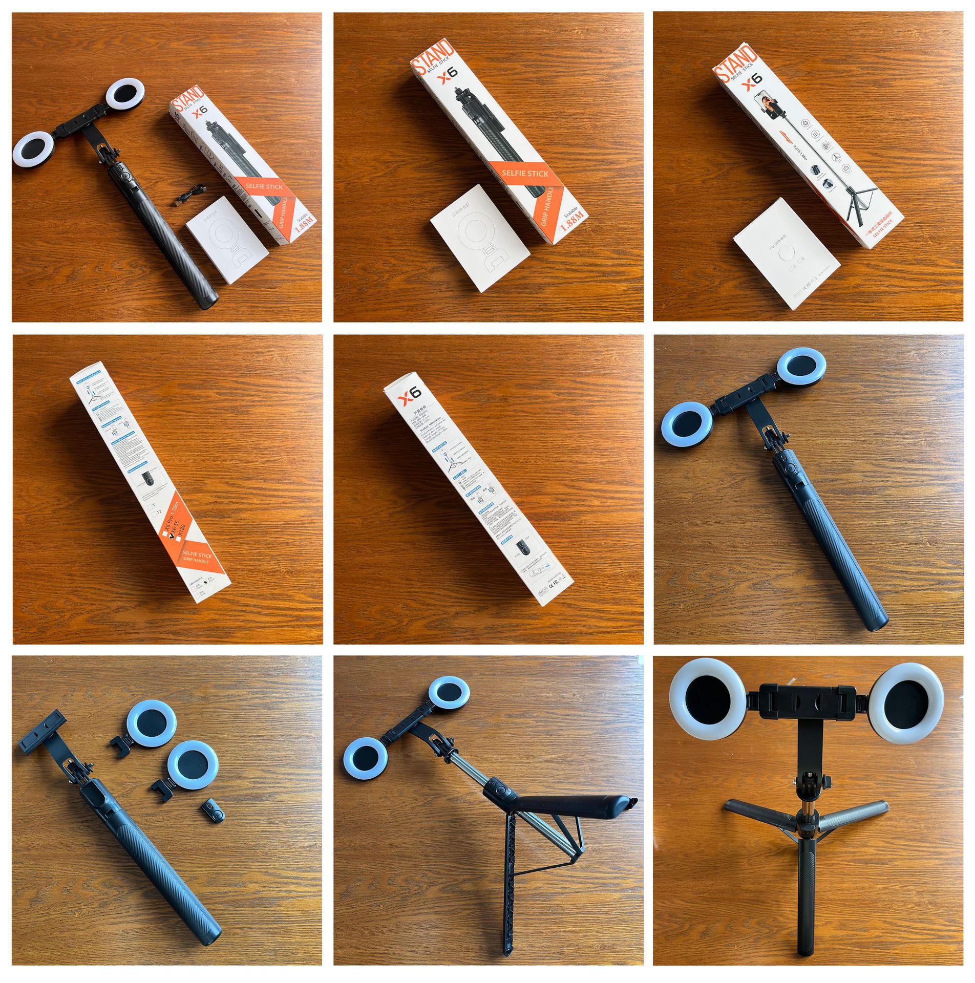 • 검정색 X6se 셀카봉 단일 소형 조명 1.8m