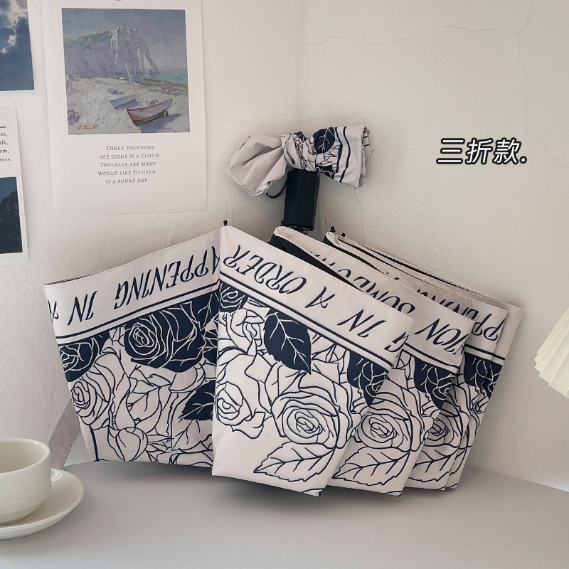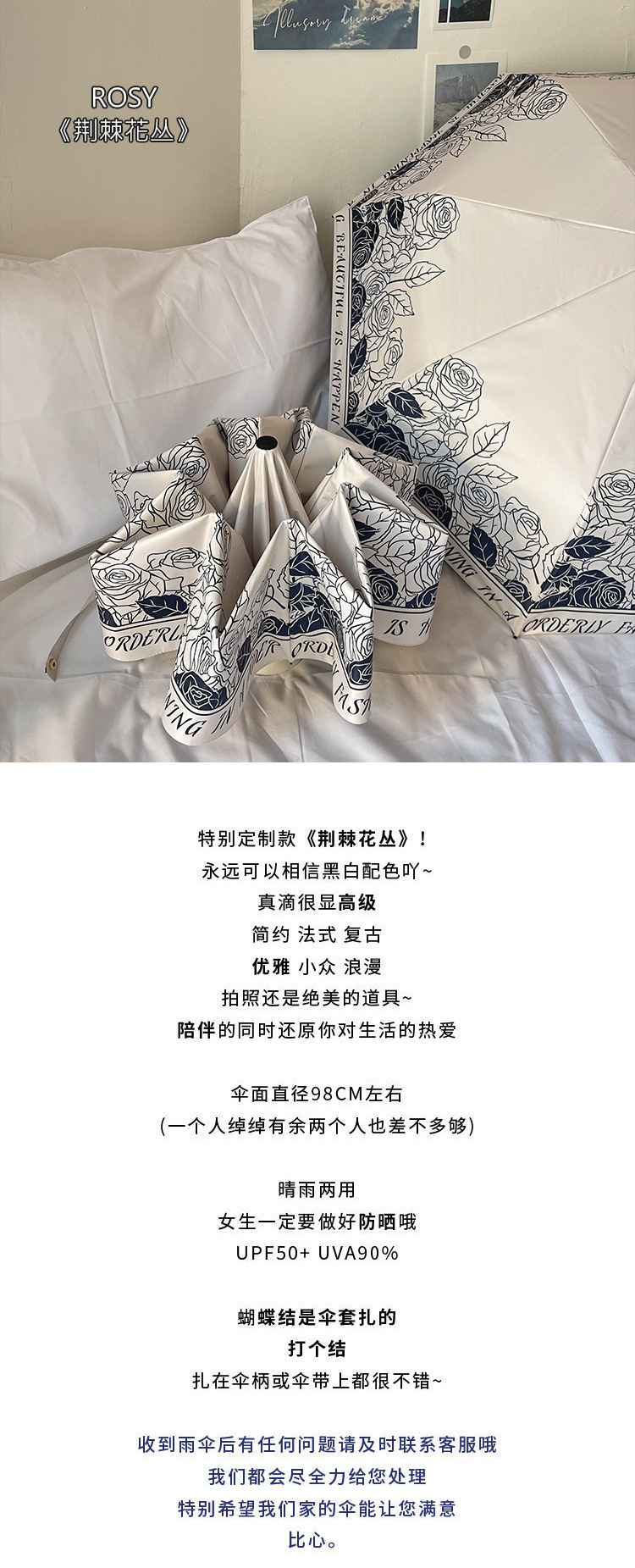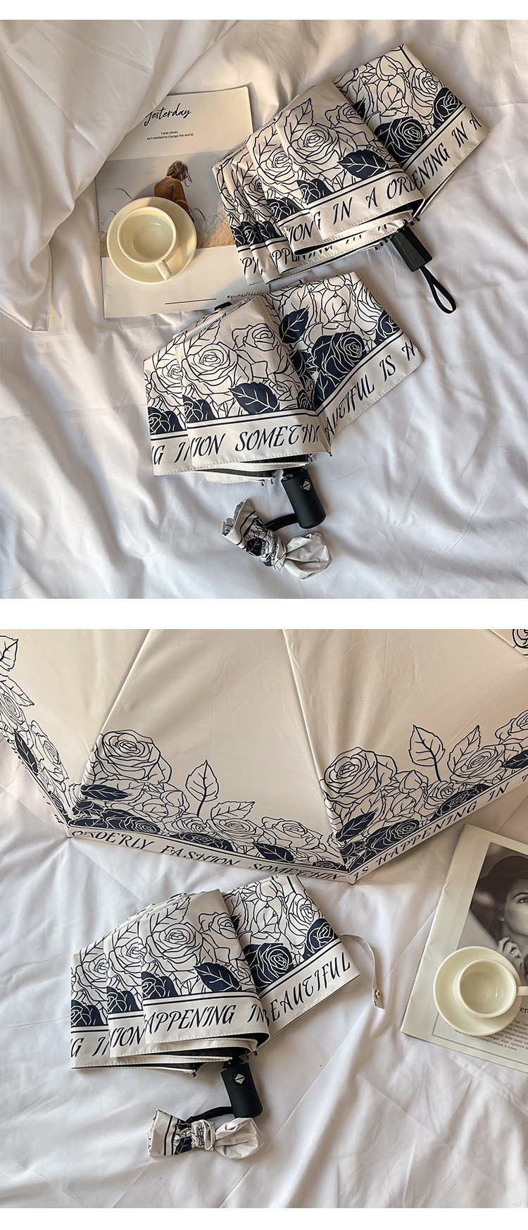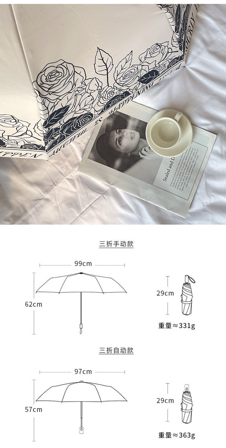 딸기 토끼 맑은 비 파라솔 Ins 태양 우산 여성의 안티-자동 3 발 UV 크로스-보더 듀얼-사용 블랙 로즈