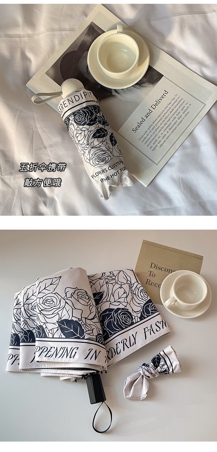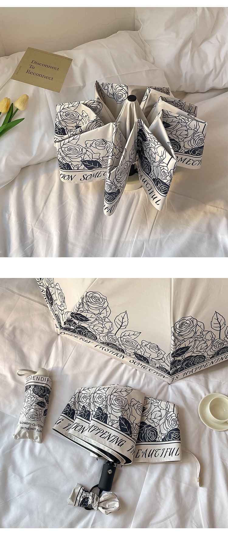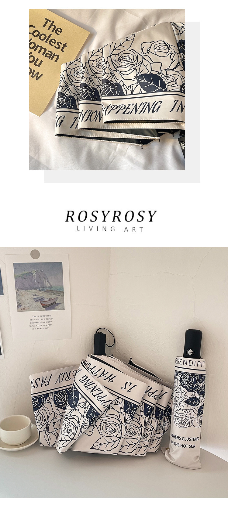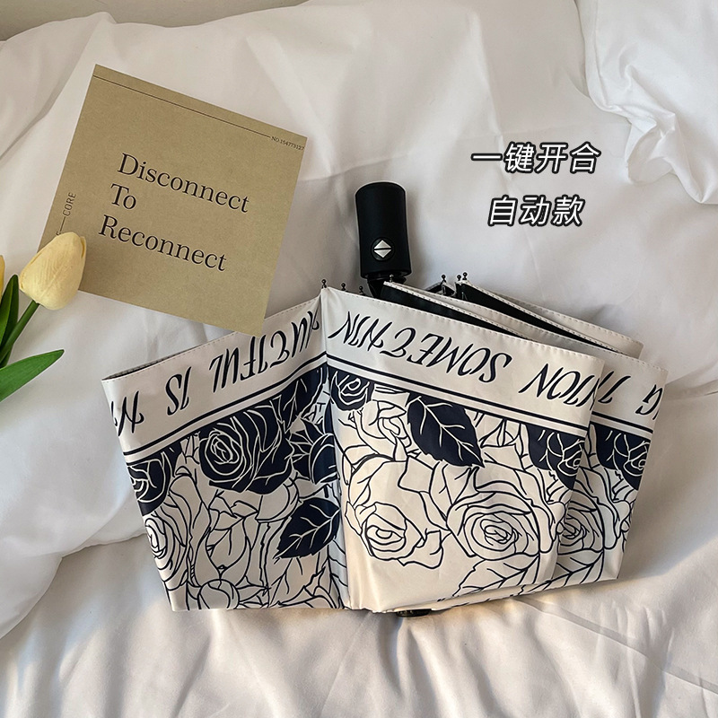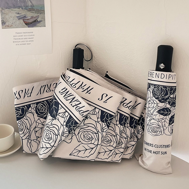 딸기 토끼 맑은 비 파라솔 Ins 태양 우산 여성의 안티-자동 3 발 UV 크로스-보더 듀얼-사용 블랙 로즈