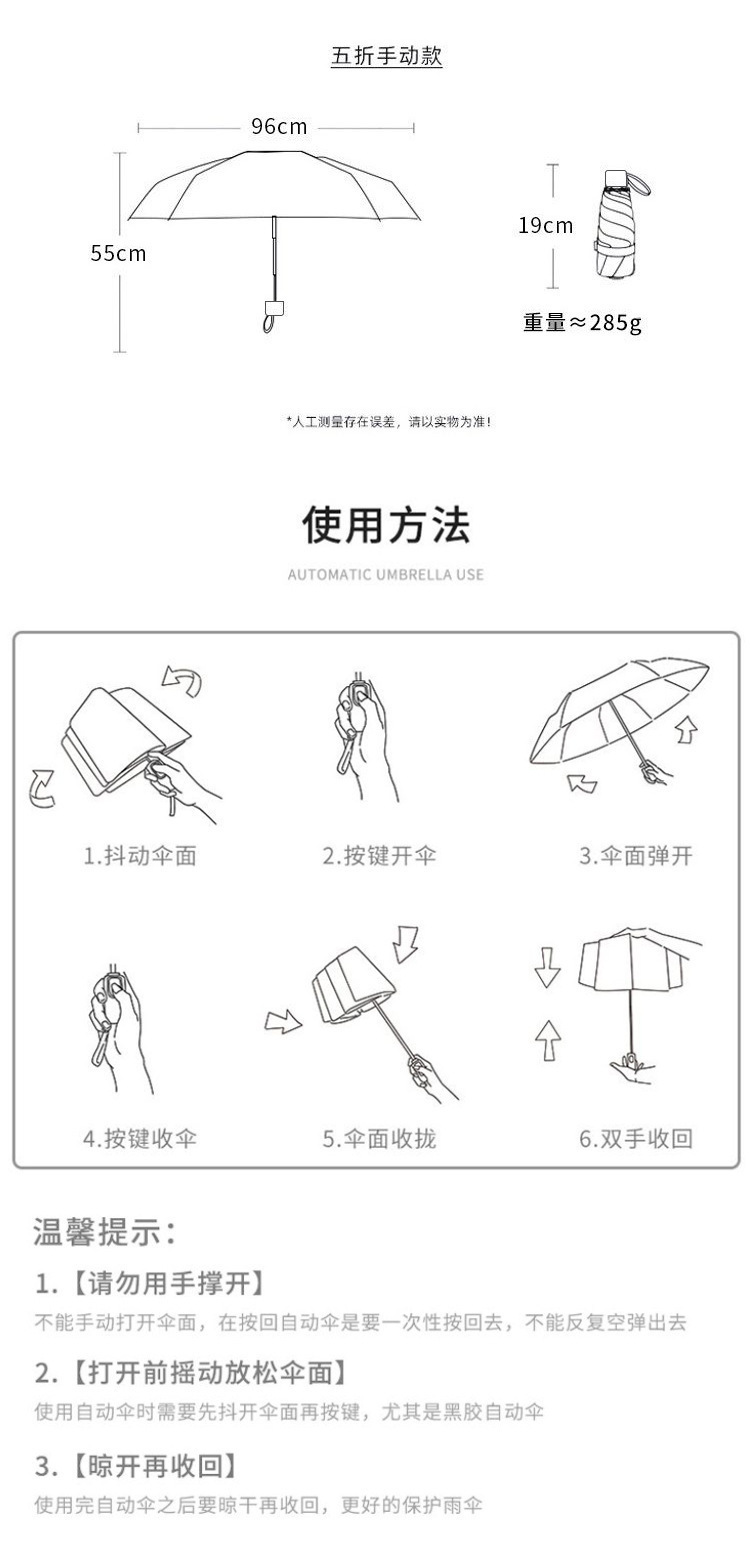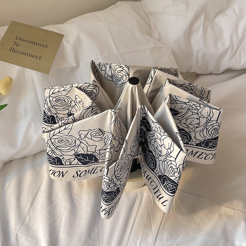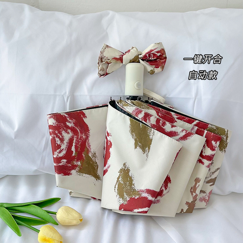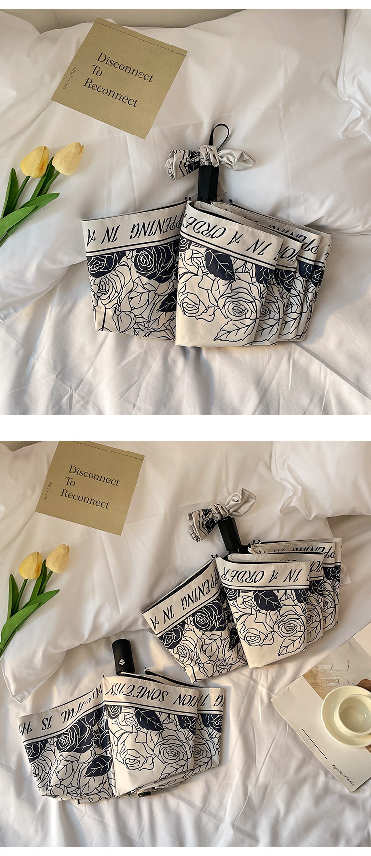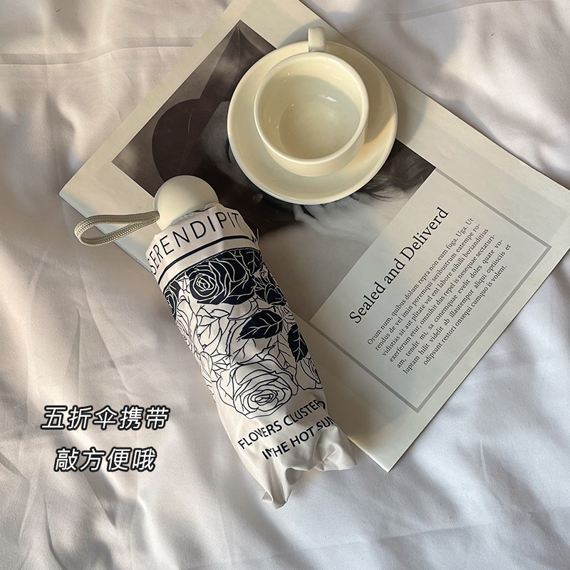 딸기 토끼 맑은 비 파라솔 Ins 태양 우산 여성의 안티-자동 3 발 UV 크로스-보더 듀얼-사용 블랙 로즈