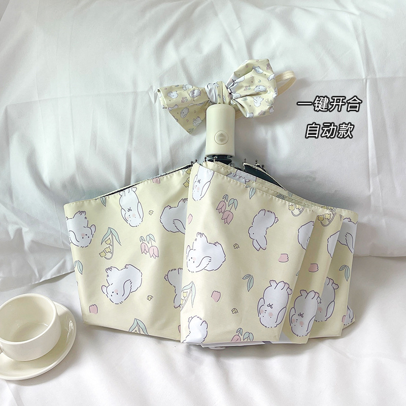 딸기 토끼 맑은 비 파라솔 Ins 태양 우산 여성의 안티-자동 3 발 UV 크로스-보더 듀얼-사용 블랙 로즈스토어 가기