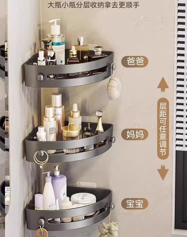 Gao Wenhai 펀치없는 벽걸이 형 욕실 랙 화장실 랙 삼각형 바구니 보관 랙 공장 아울렛스토어 가기