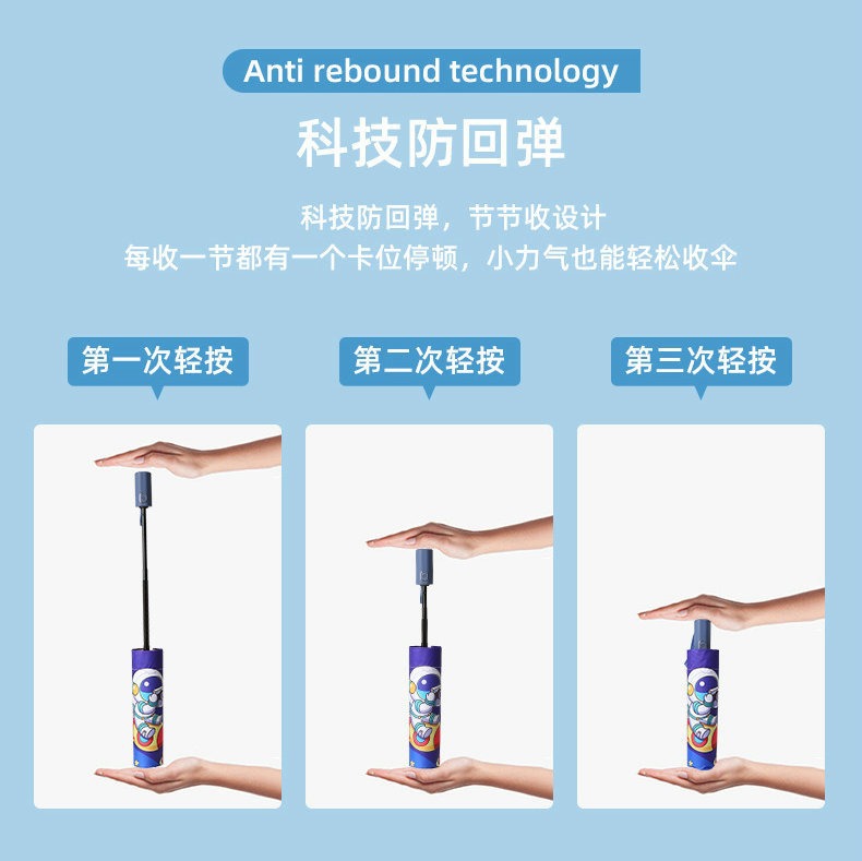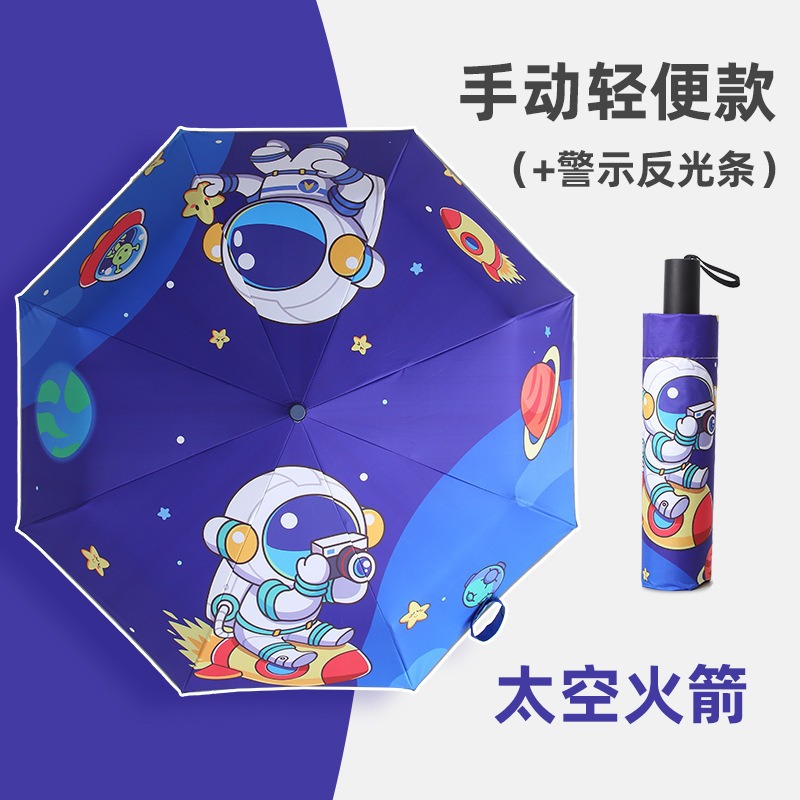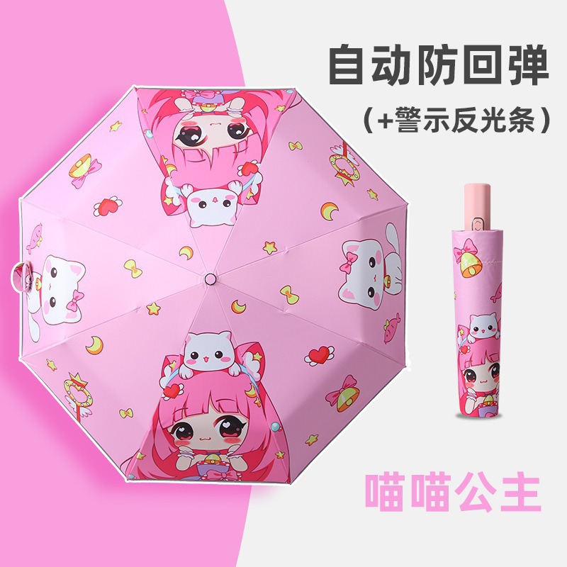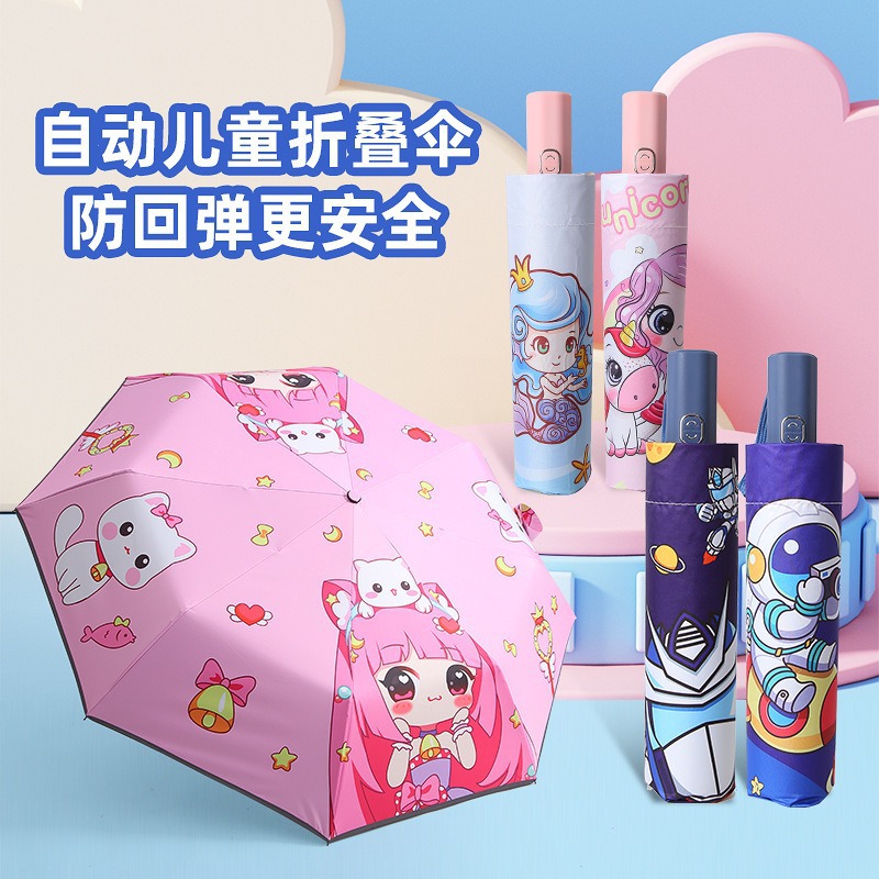 맞춤형 만화 귀여운 휴대용 완전 자동 안티 리바운드 안전 반사 스트립 접는 우산 어린이 우산 초등학생을위한스토어 가기