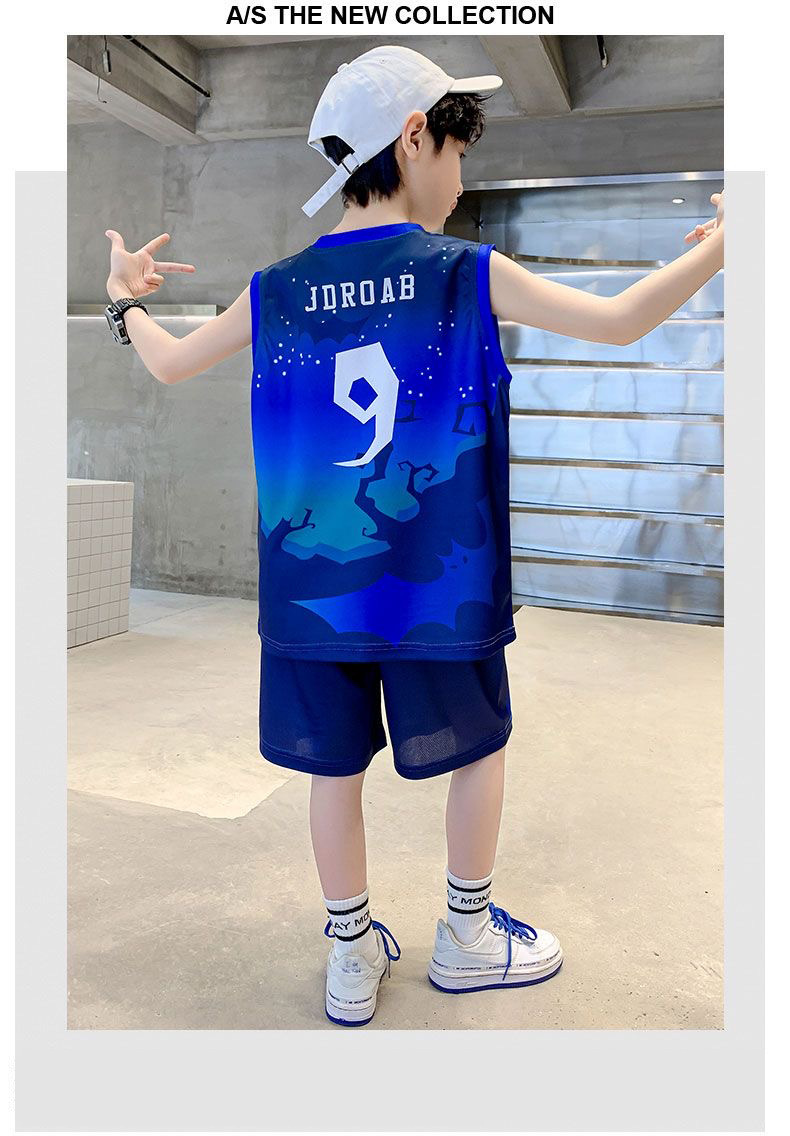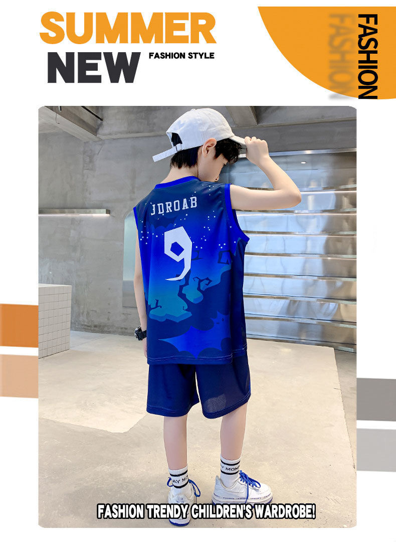 여름 어린이 유행 V-목 느슨한 캐주얼 조끼 세트 큰 소년의 잘 생긴 민소매 훈련 옷스토어 가기