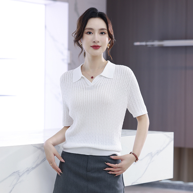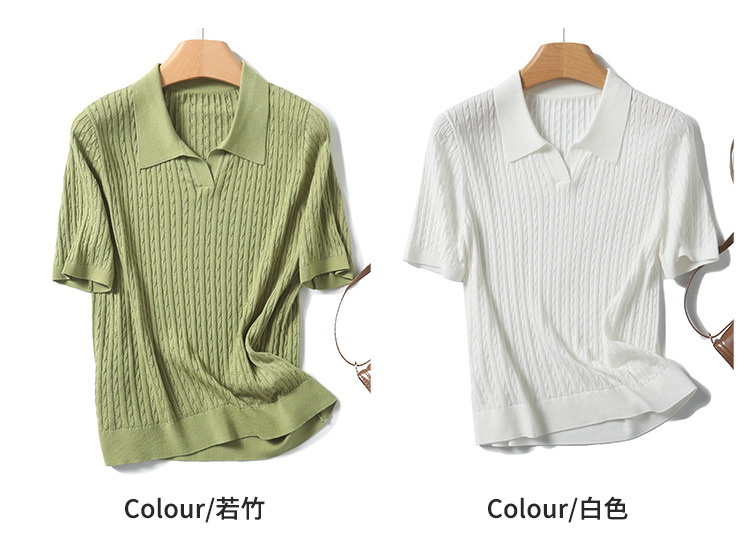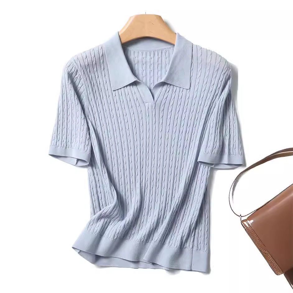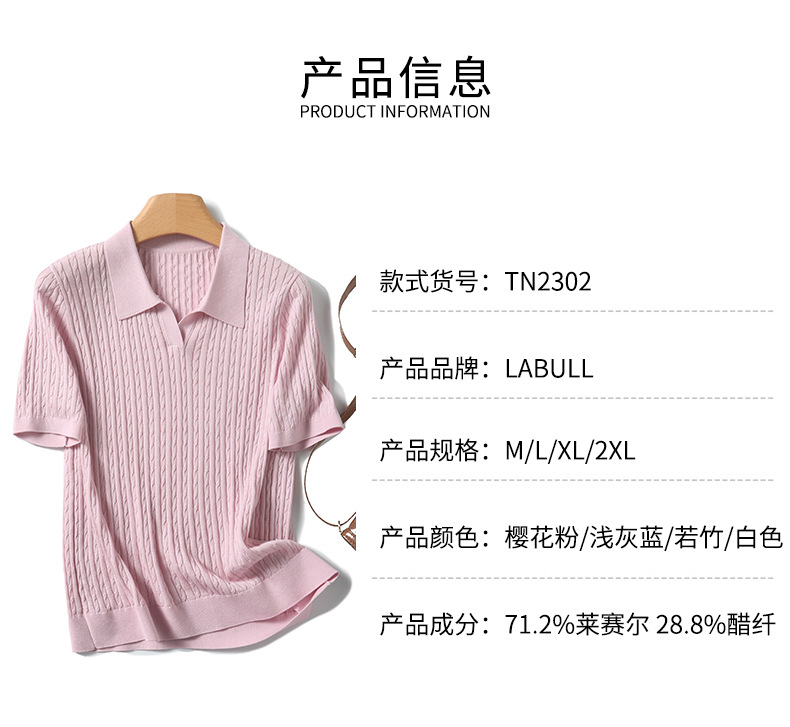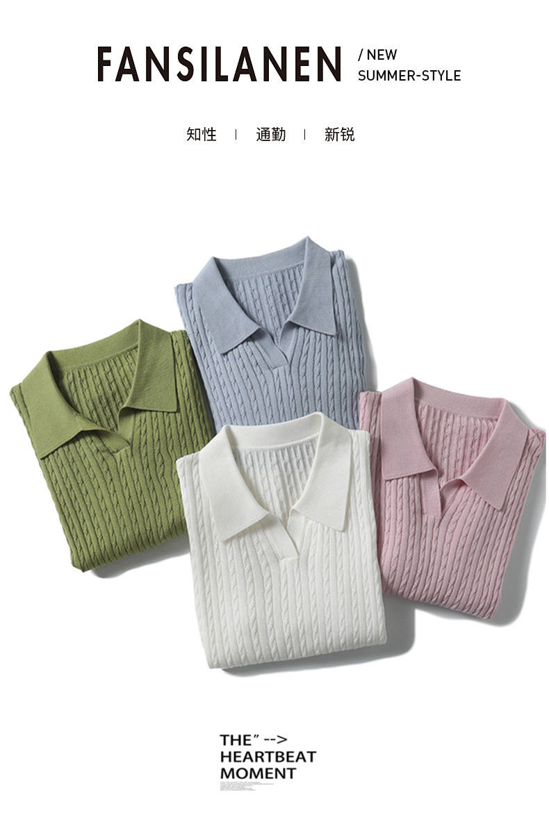 지적인 폴로 칼라 반팔 티셔츠 여성용 아세테이트 케이블 통근 25 여름 여성용 텐셀 스웨터 TN2302스토어 가기