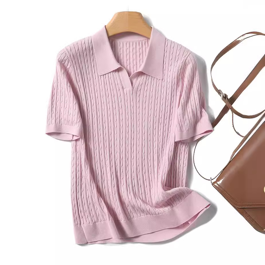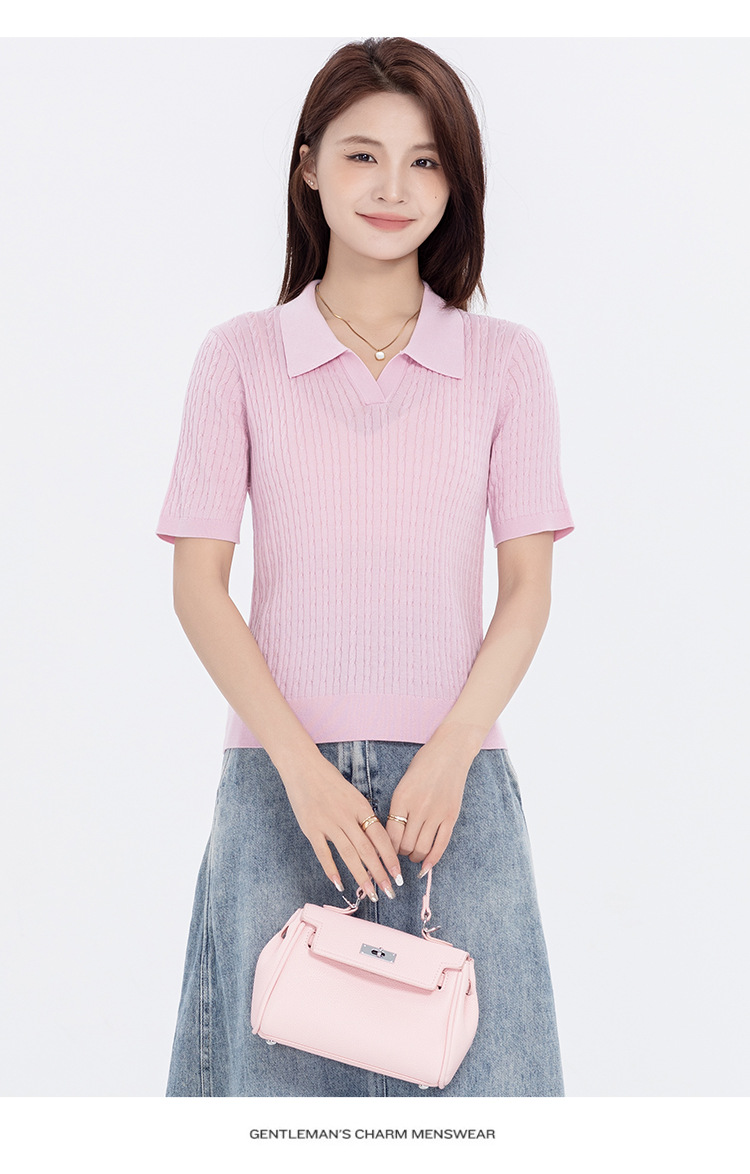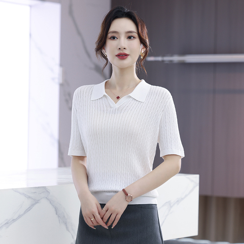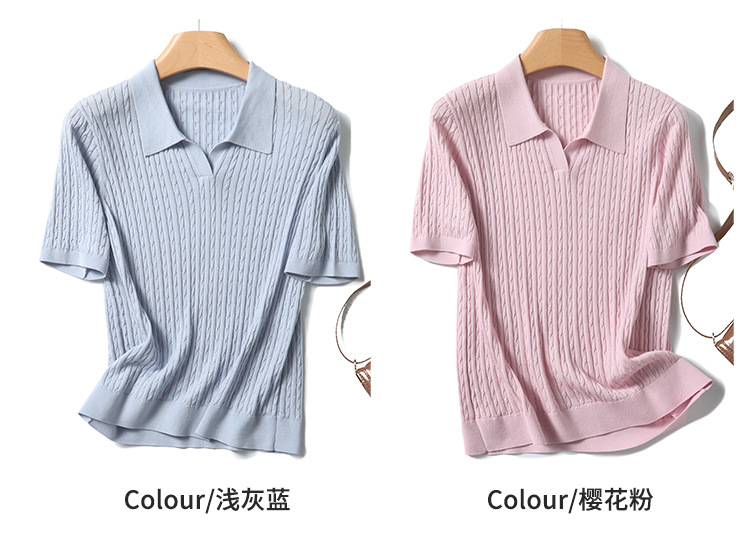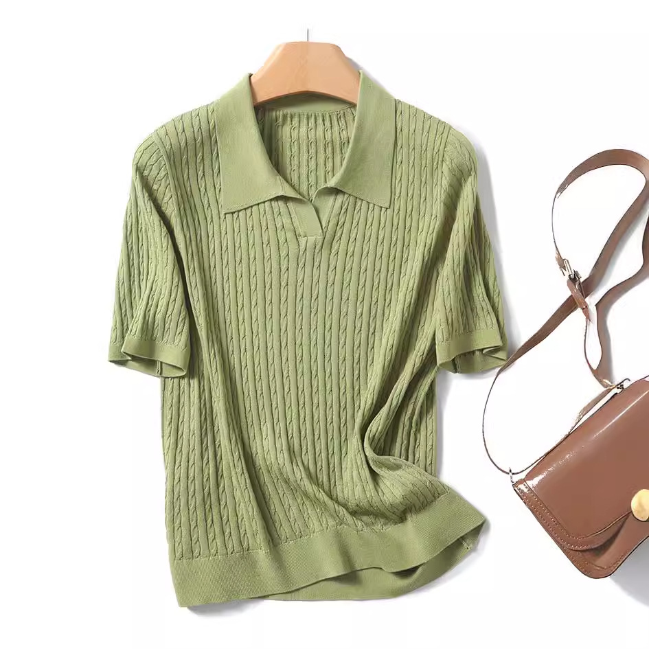 지적인 폴로 칼라 반팔 티셔츠 여성용 아세테이트 케이블 통근 25 여름 여성용 텐셀 스웨터 TN2302스토어 가기