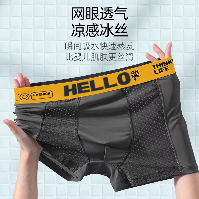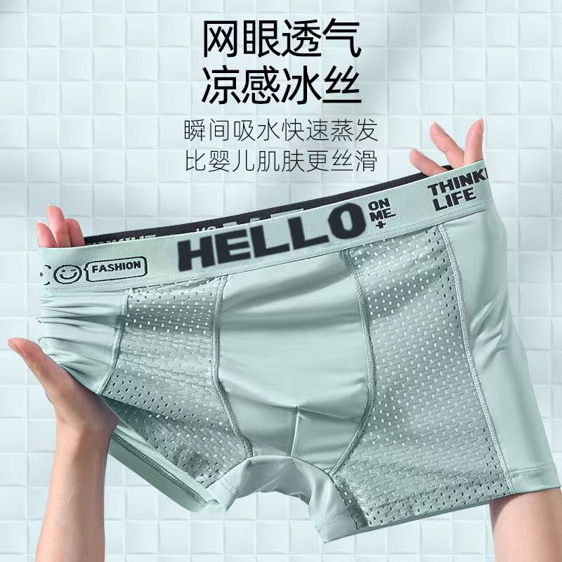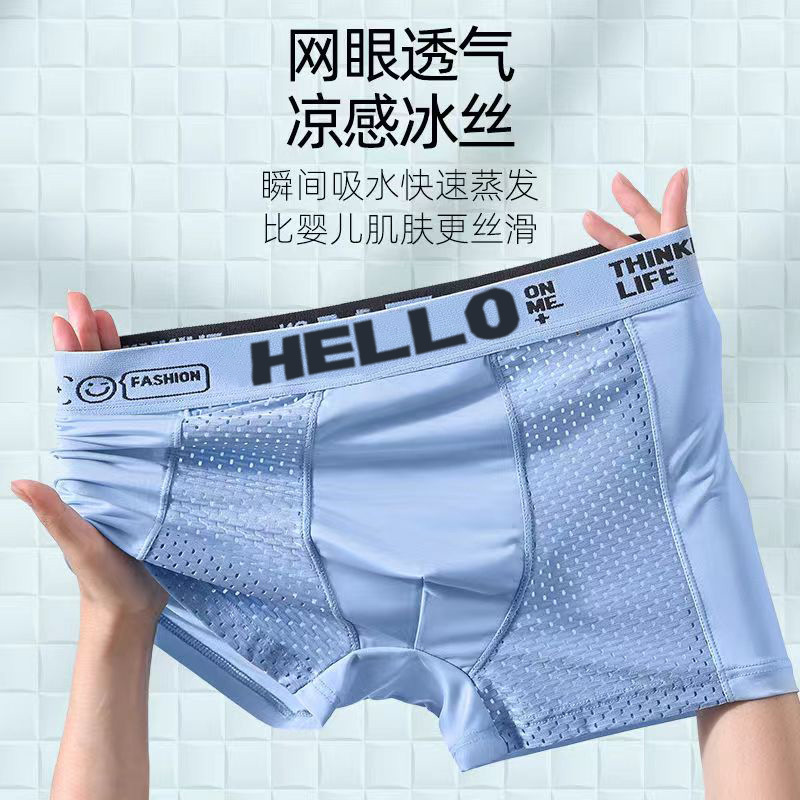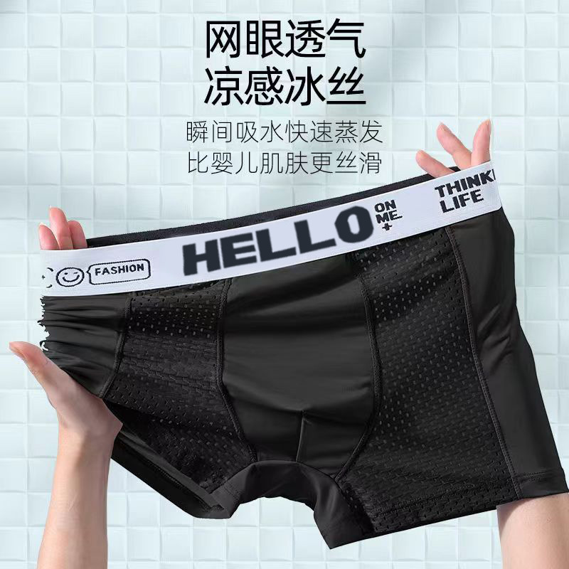 여름 남성 속옷 아이스 실크 메쉬 항균 Crotch Boxer 짧은 바지 남성용 얇은 통기성 편안한 복서 바지스토어 가기