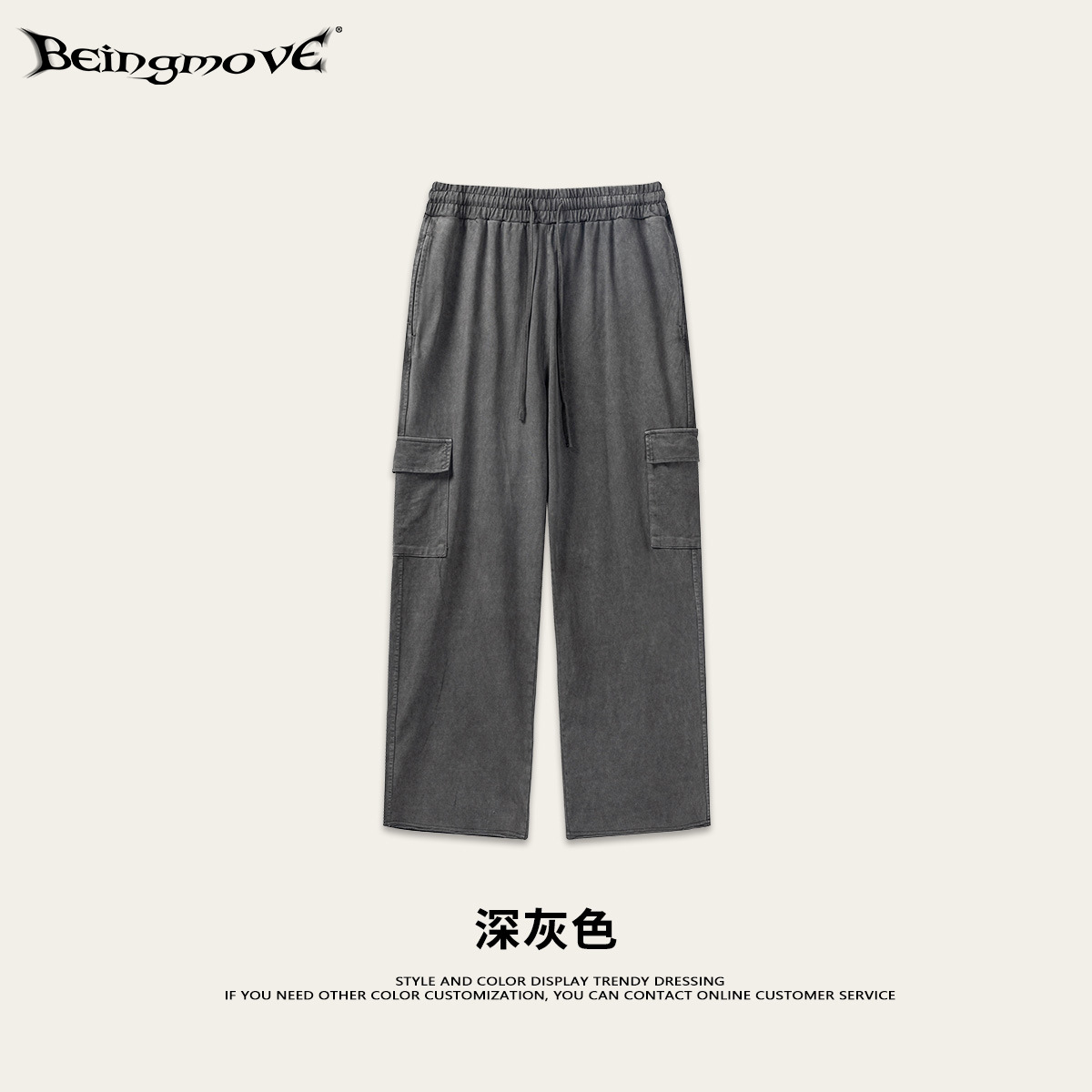 2025 봄 여름 트렌디 브랜드 청소년용 바지, 얇은 멀티 포켓 스트레이트 팬츠, 하이 스트리트 작업복 스타일, 남성용 루즈 캐주얼 팬츠스토어 가기