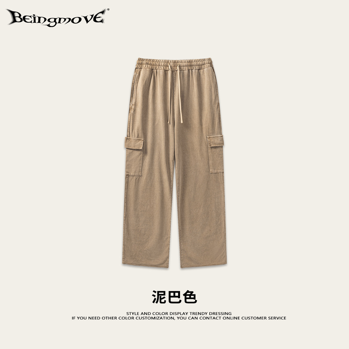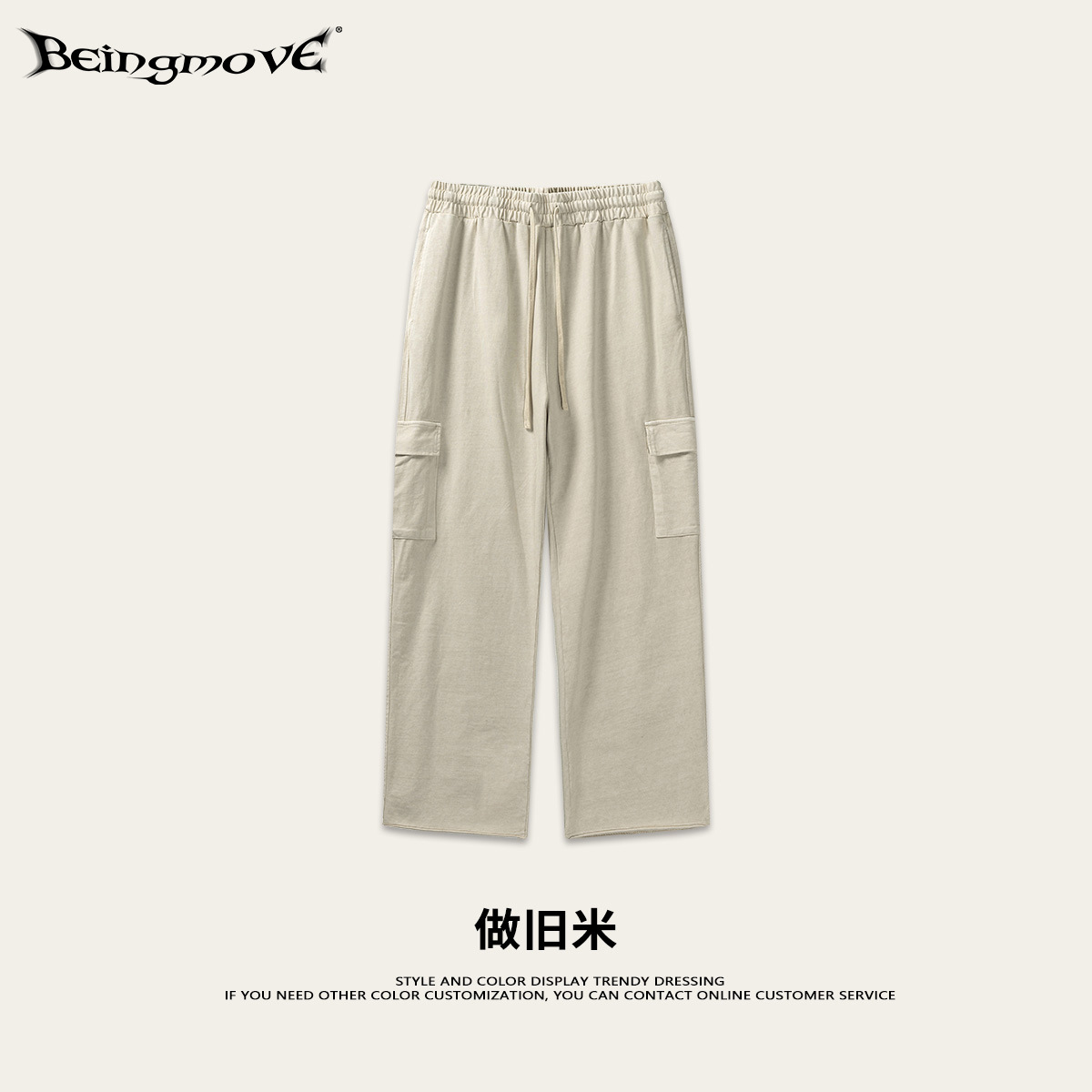 2025 봄 여름 트렌디 브랜드 청소년용 바지, 얇은 멀티 포켓 스트레이트 팬츠, 하이 스트리트 작업복 스타일, 남성용 루즈 캐주얼 팬츠