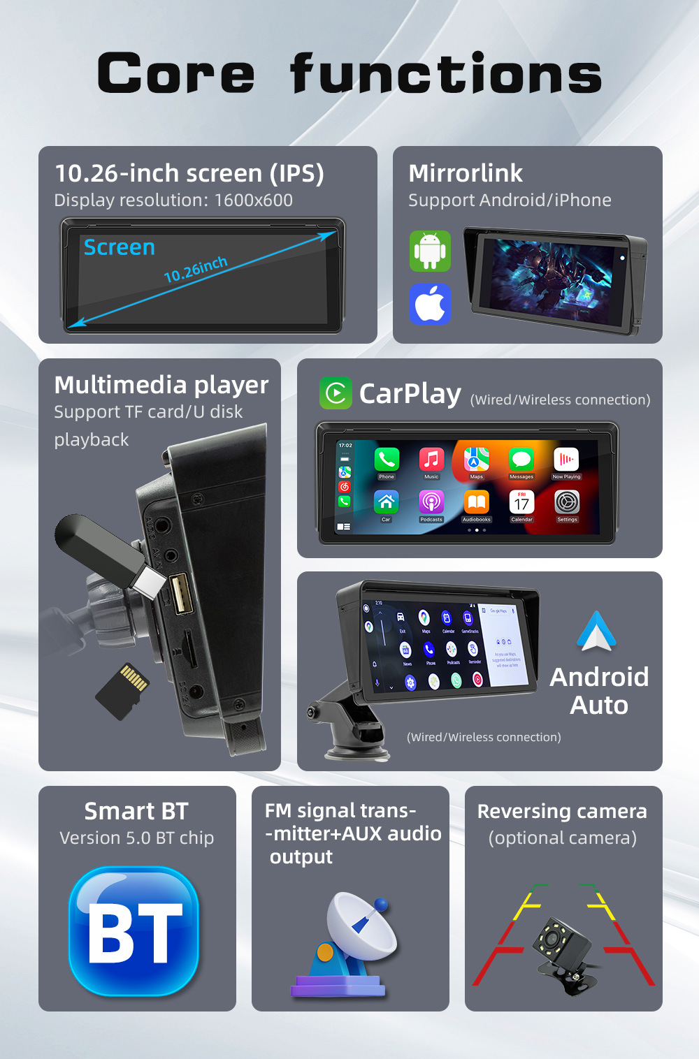 무선 카플레이 차양형 10.26inch 고화질 대형 스크린 블루투스 차량용 MP5 플레이어 편리한 내비게이션