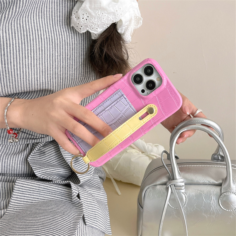 명암 컬러 악어 가죽 패턴 카드 손목 밴드 iphone16Promax 애플 15 휴대 전화 케이스 14 하드 쉘 13 여성