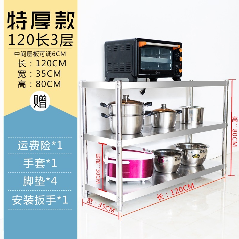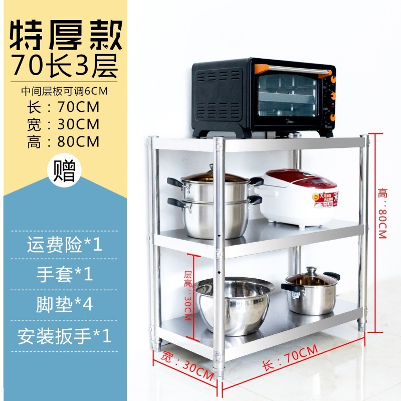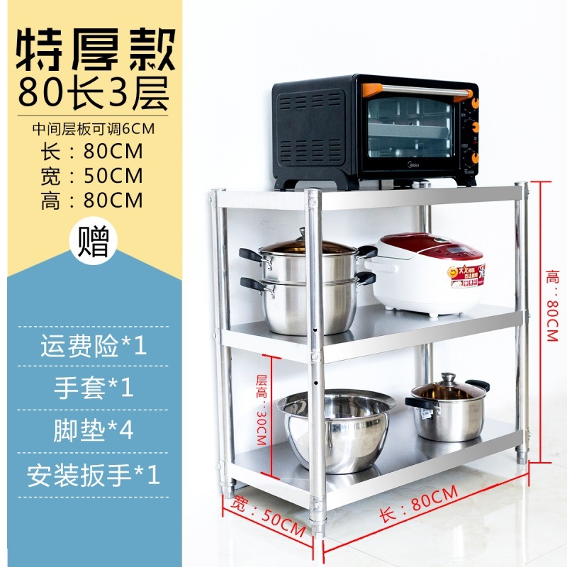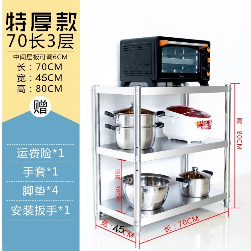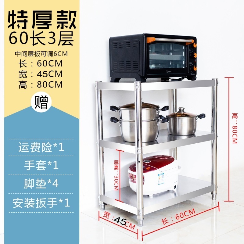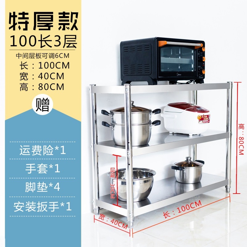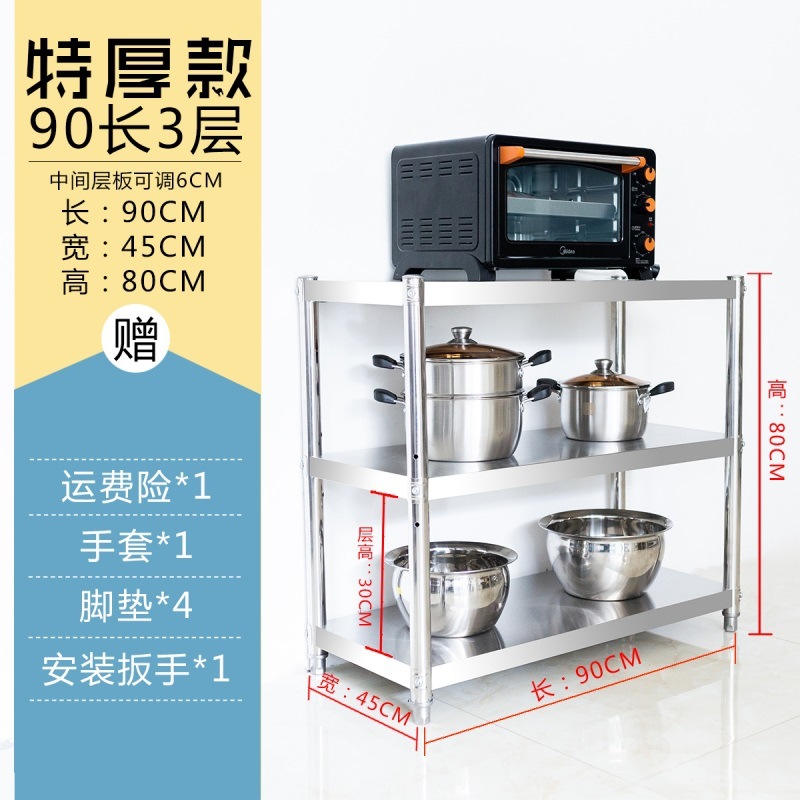 304 주방 선반 3단 호텔용 스테인리스 선반 가정용 전자레인지 보관 선반 바닥형 무타공