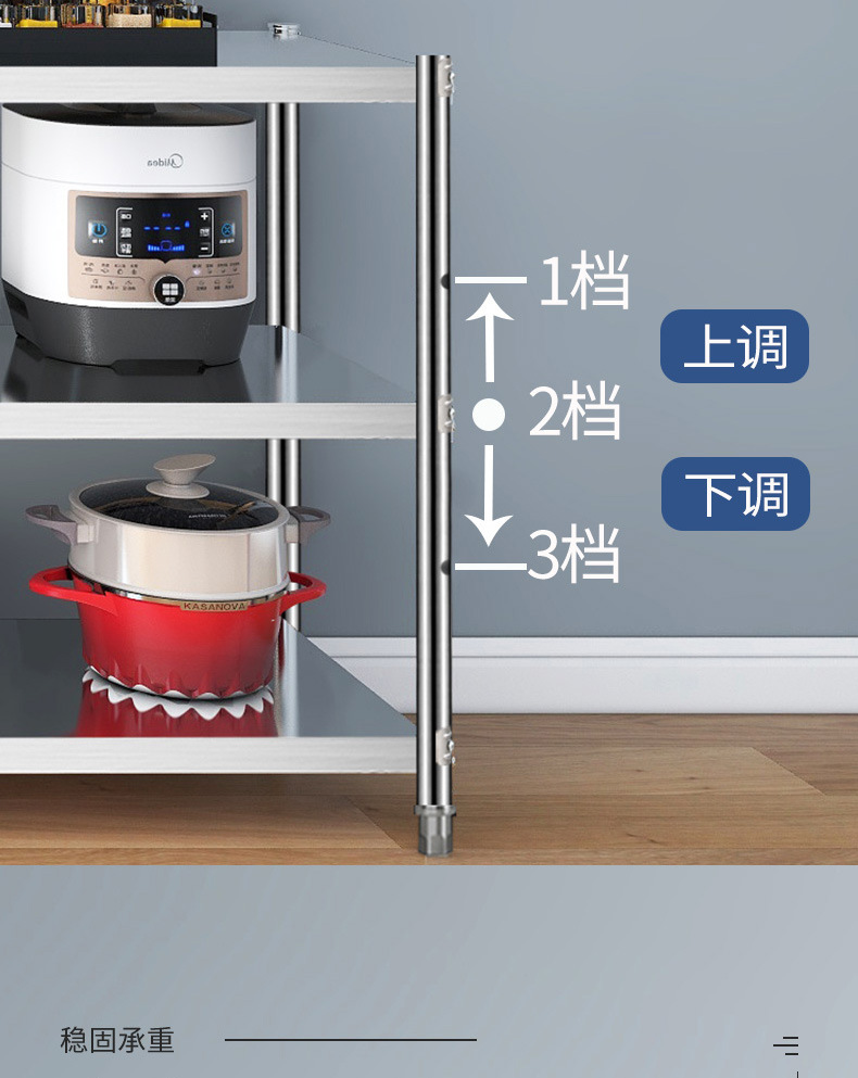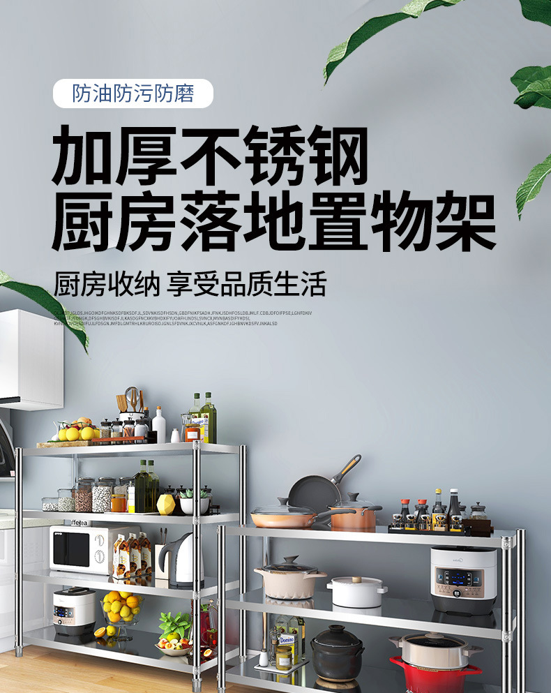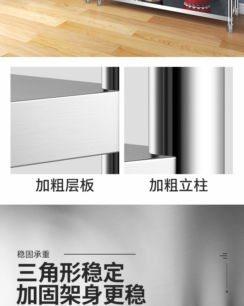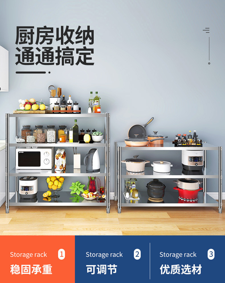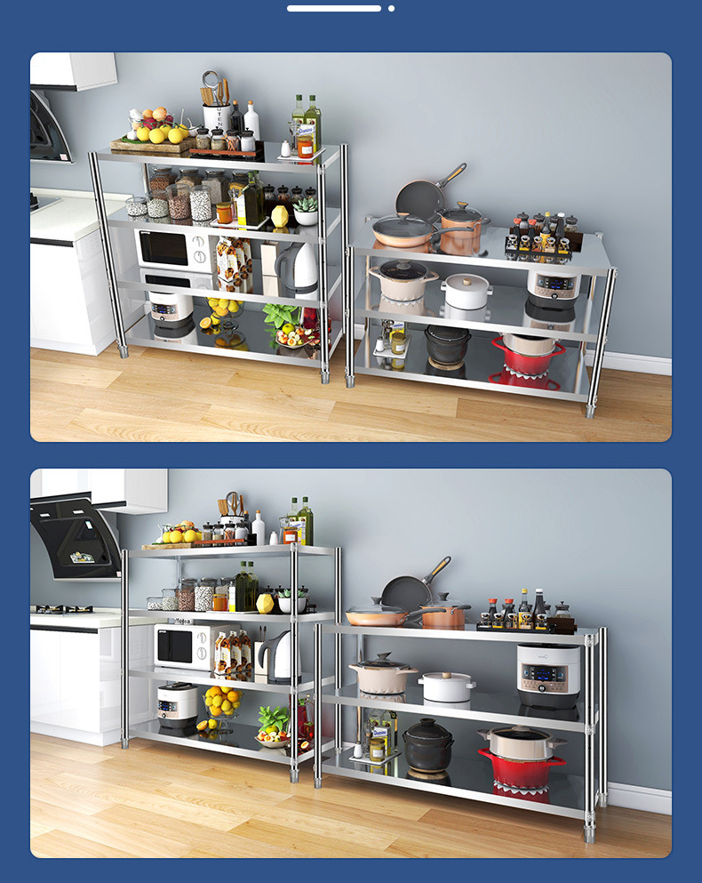 304 주방 선반 3단 호텔용 스테인리스 선반 가정용 전자레인지 보관 선반 바닥형 무타공