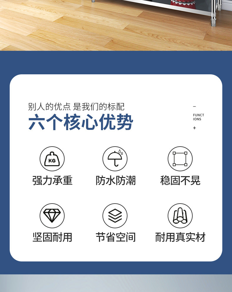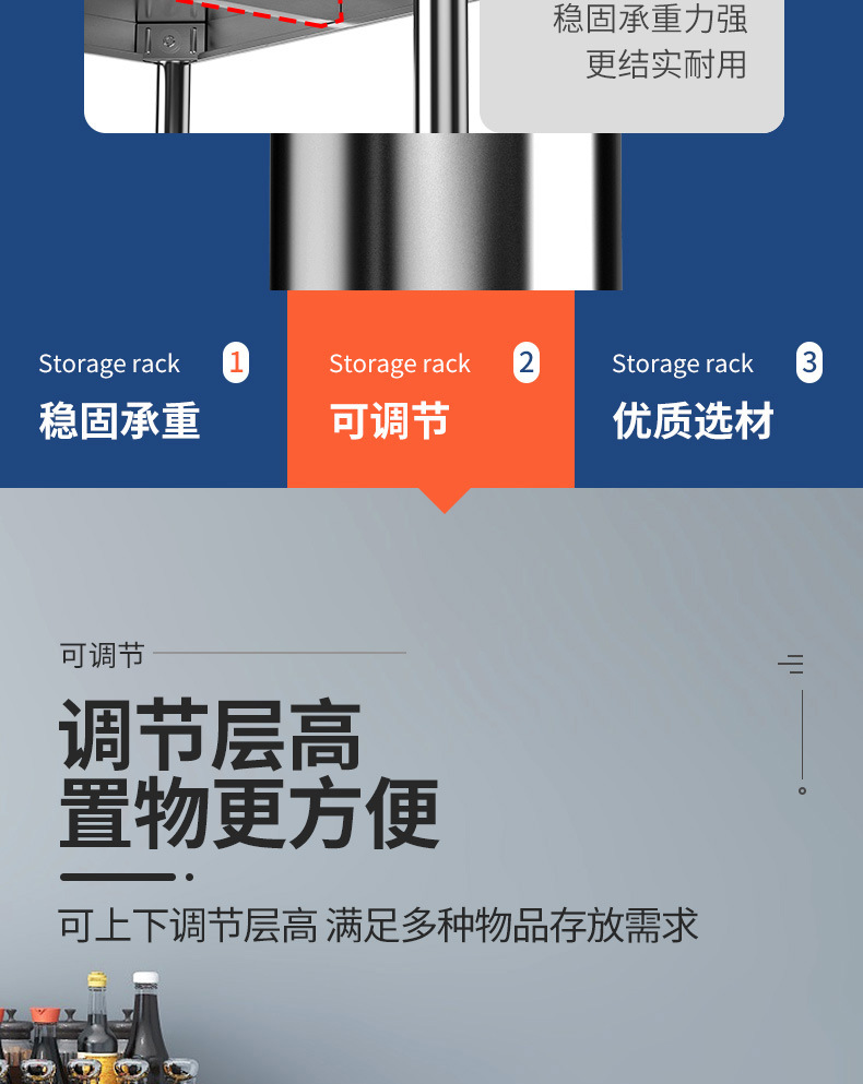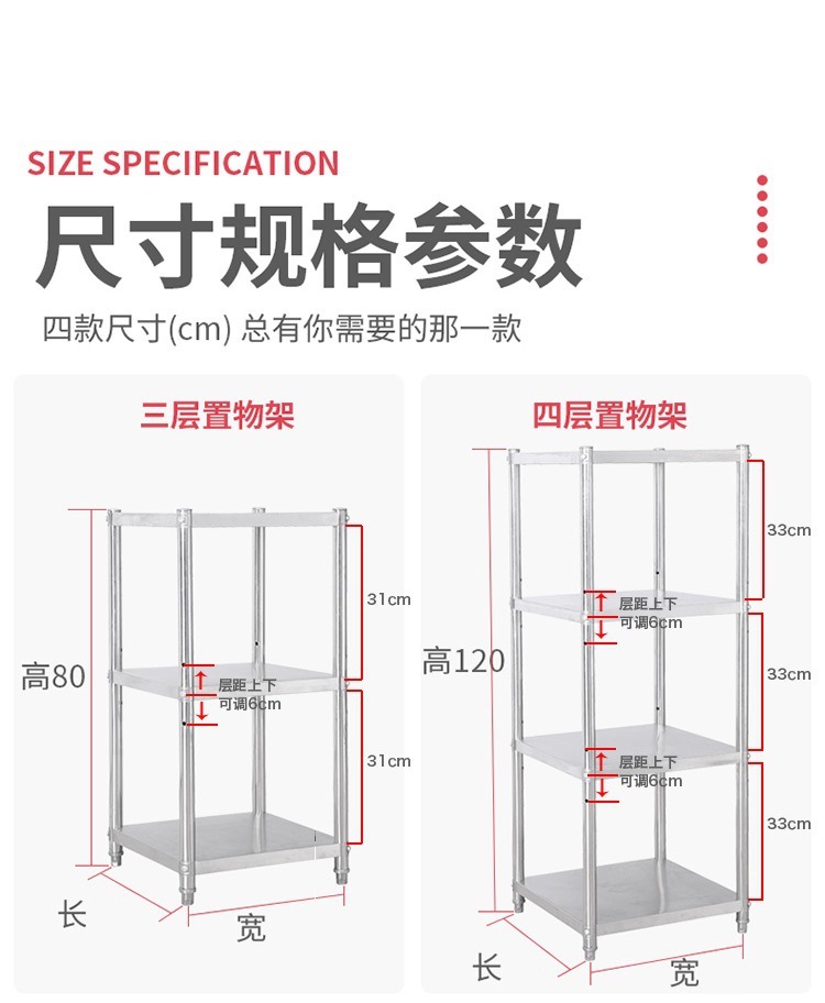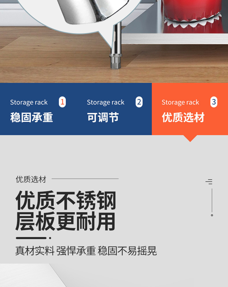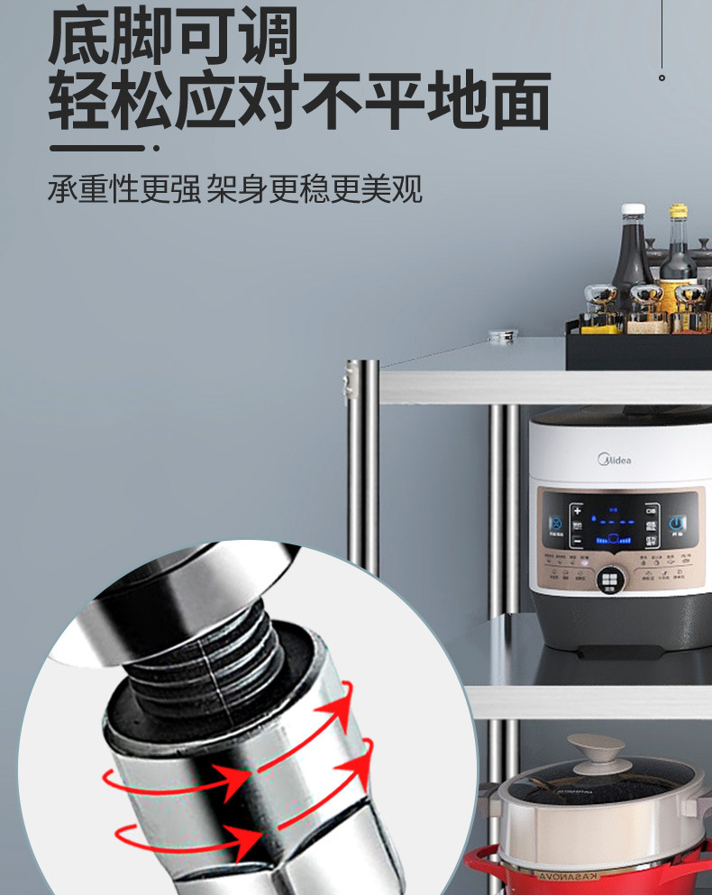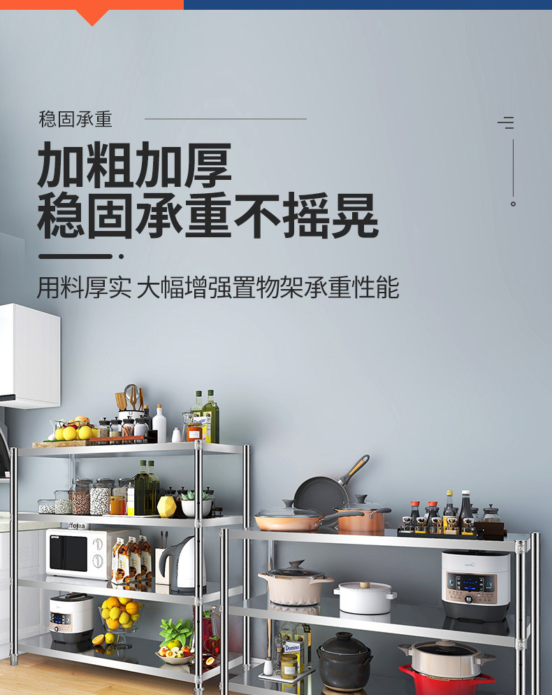 304 주방 선반 3단 호텔용 스테인리스 선반 가정용 전자레인지 보관 선반 바닥형 무타공