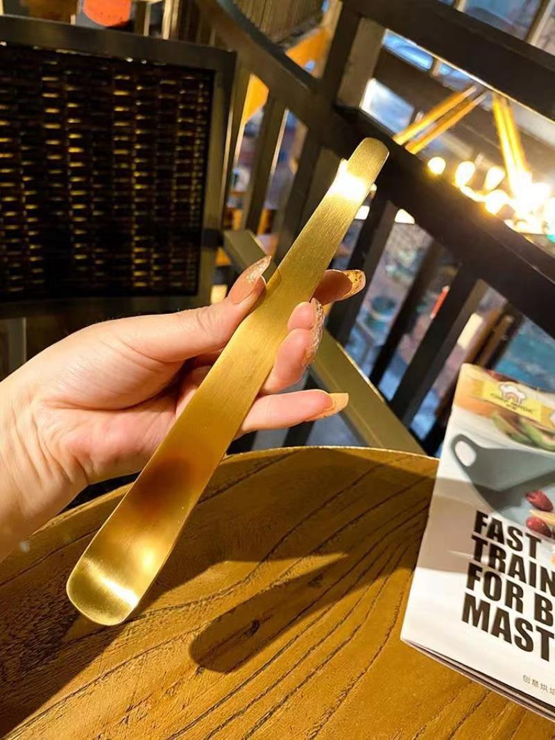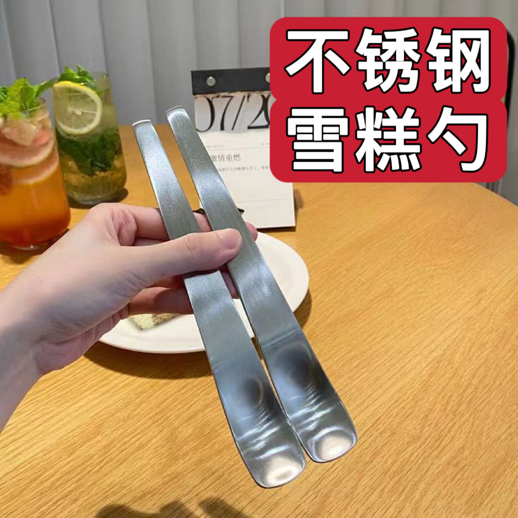 스테인레스 스틸 아이스크림 스푼 디저트 스푼 커피 혼합 스푼 플랫 헤드 티타늄 도금 긴 핸들 파기 스푼 크리에이티브 아이스크림 스푼스토어 가기