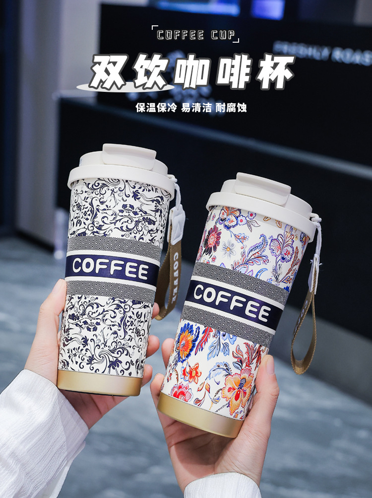 오버로드 티 지 같은 스타일 커피 컵 라니 야드 국가 패션 316 스테인레스 스틸 보온병 컵과 대용량 흡입 튜브 컵스토어 가기