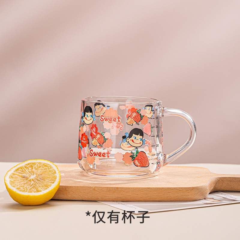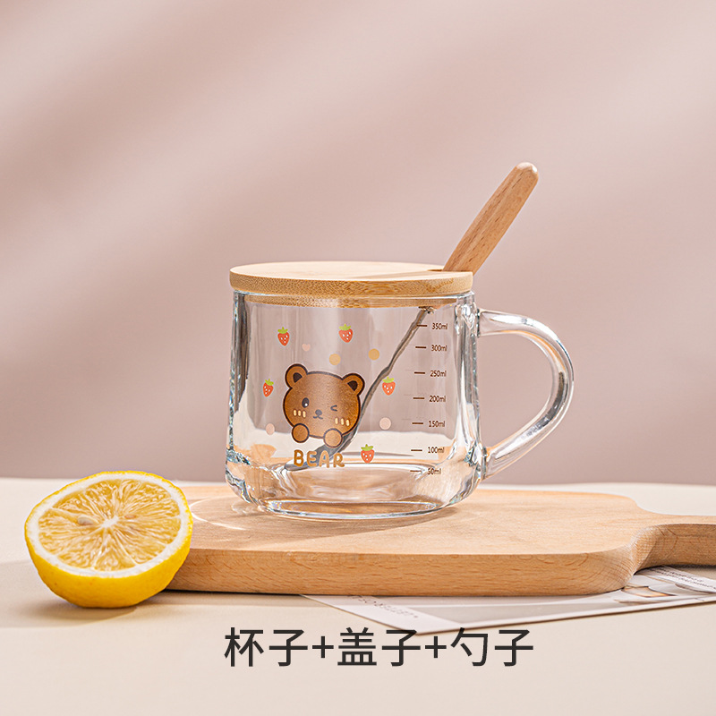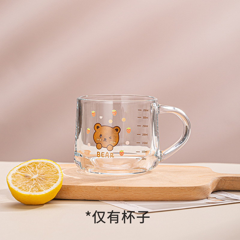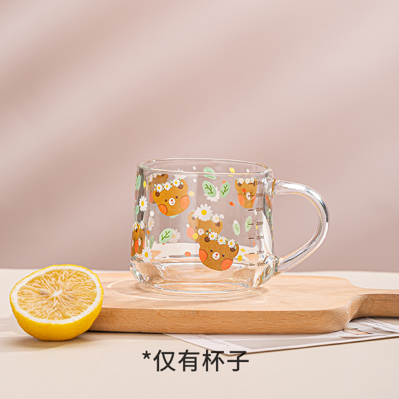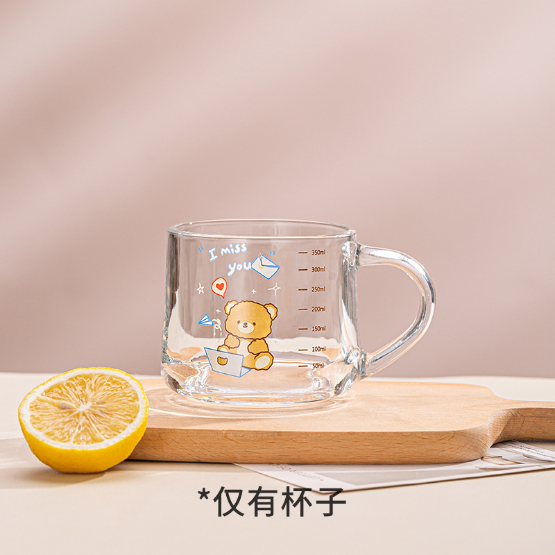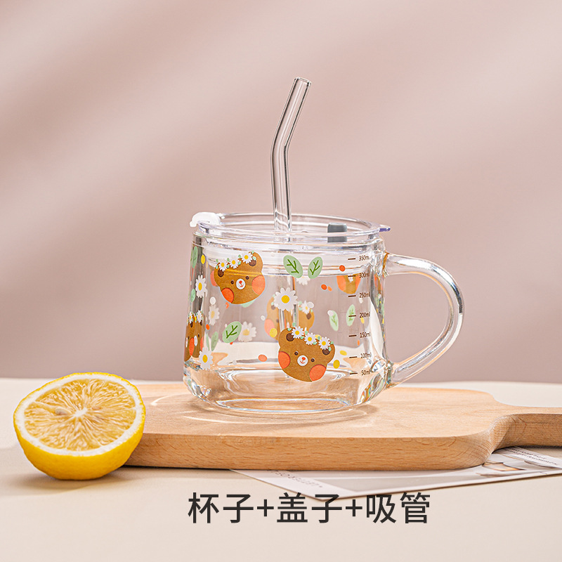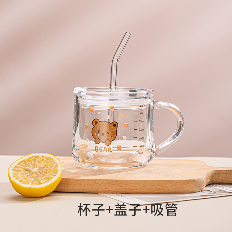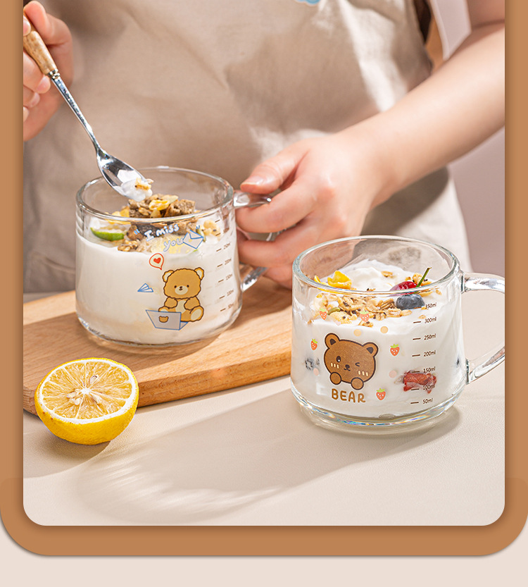 Ins 밀크 아침 식사 컵 짚으로 유리 디저트 컵 소녀 선물을위한 숟가락과 귀여운 인쇄 스케일 컵