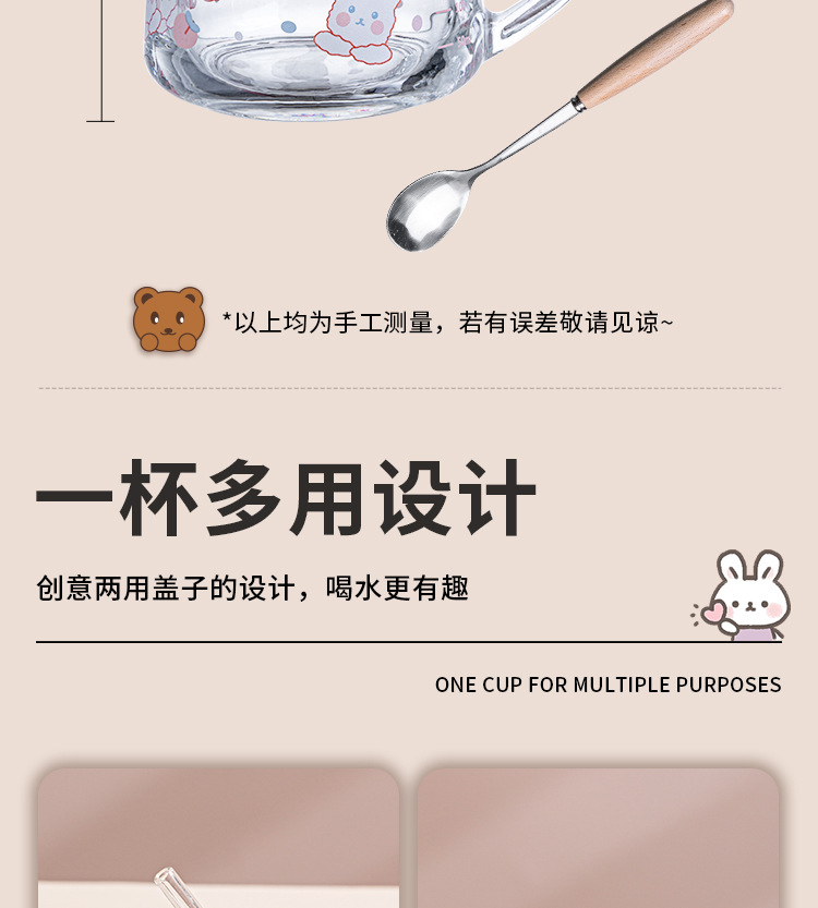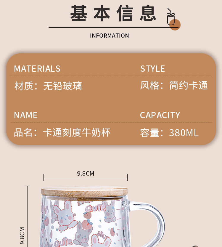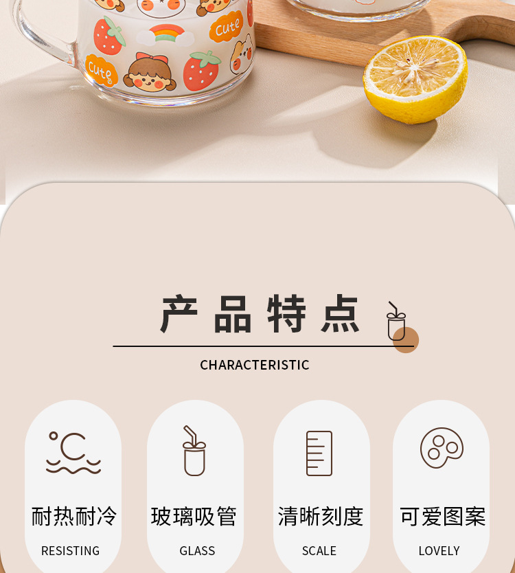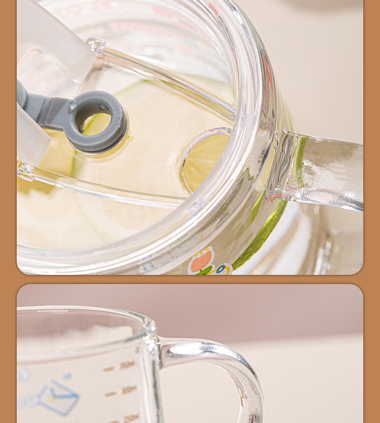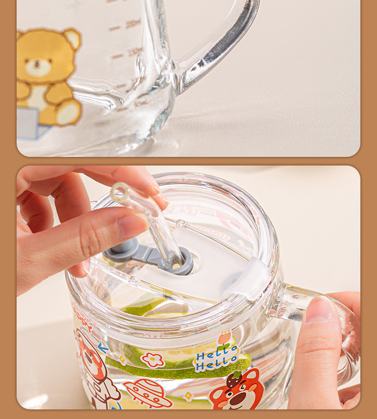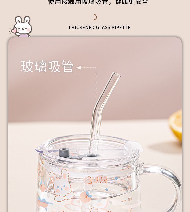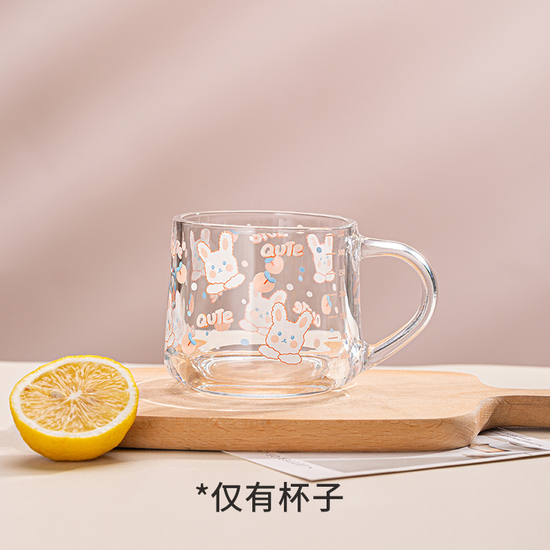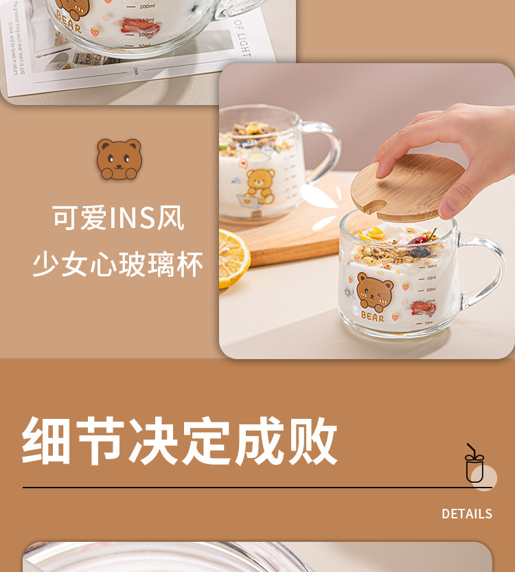 Ins 밀크 아침 식사 컵 짚으로 유리 디저트 컵 소녀 선물을위한 숟가락과 귀여운 인쇄 스케일 컵