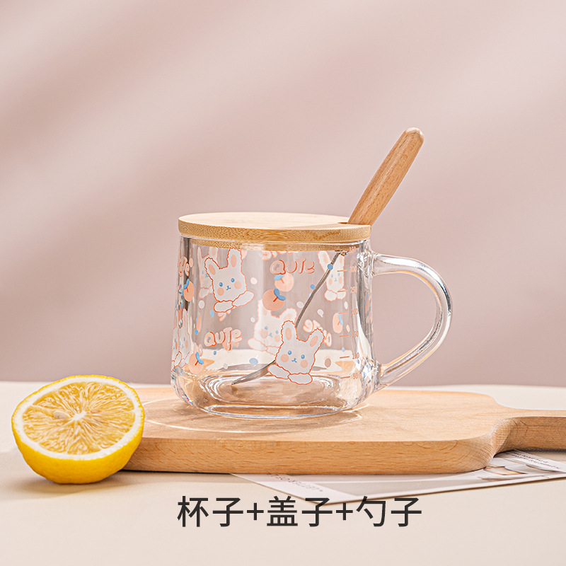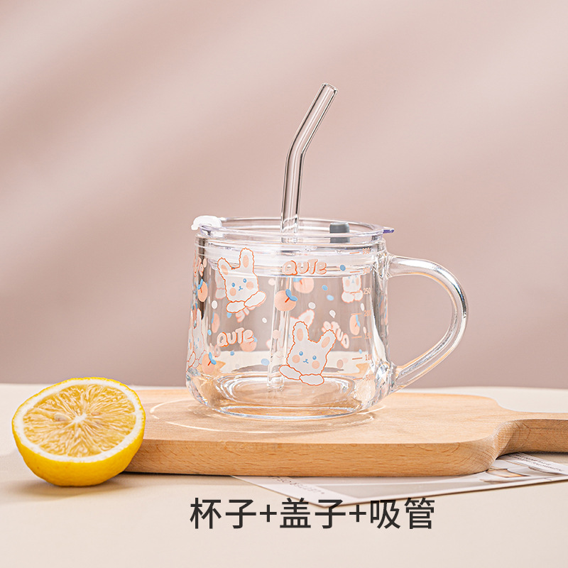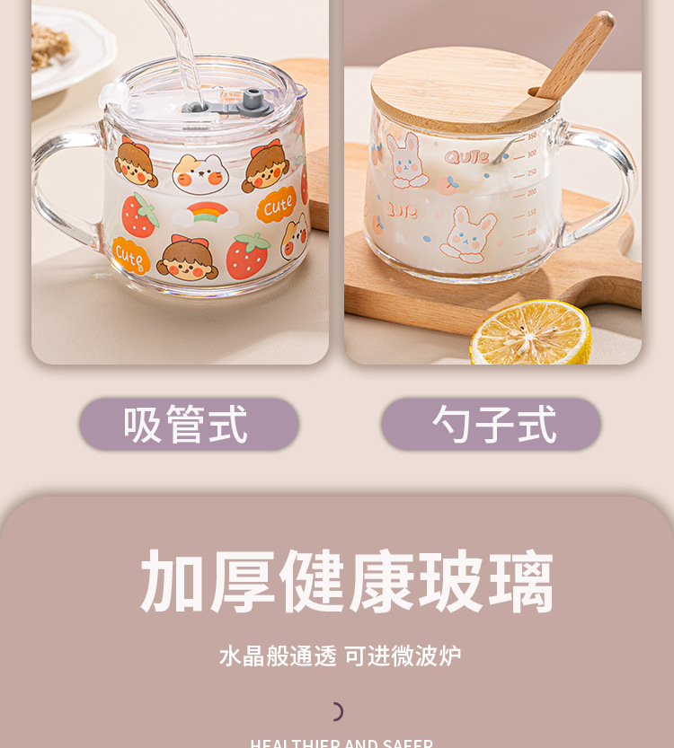 Ins 밀크 아침 식사 컵 짚으로 유리 디저트 컵 소녀 선물을위한 숟가락과 귀여운 인쇄 스케일 컵스토어 가기
