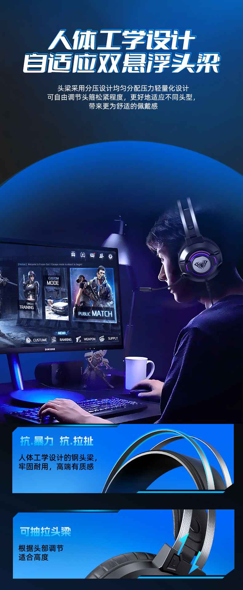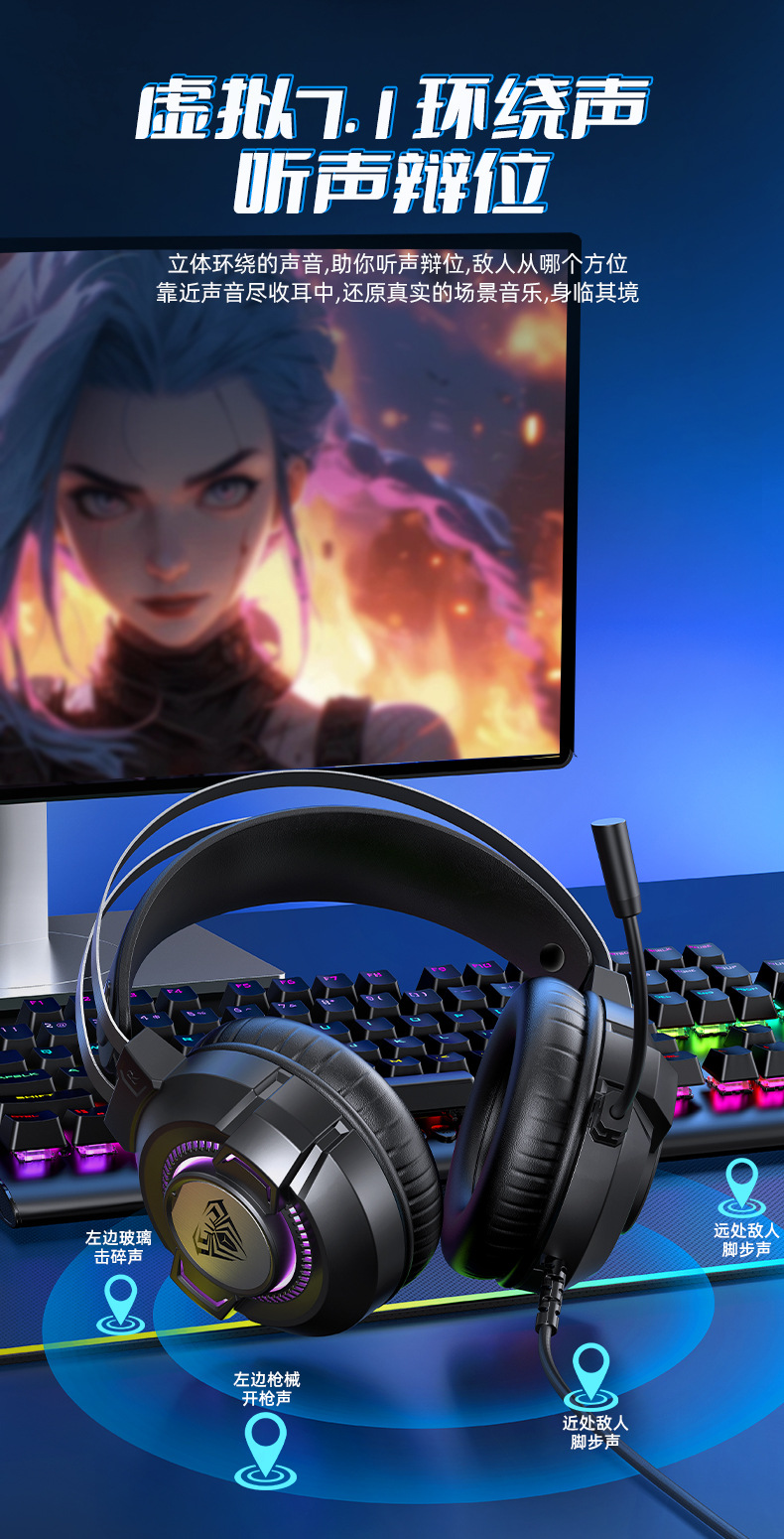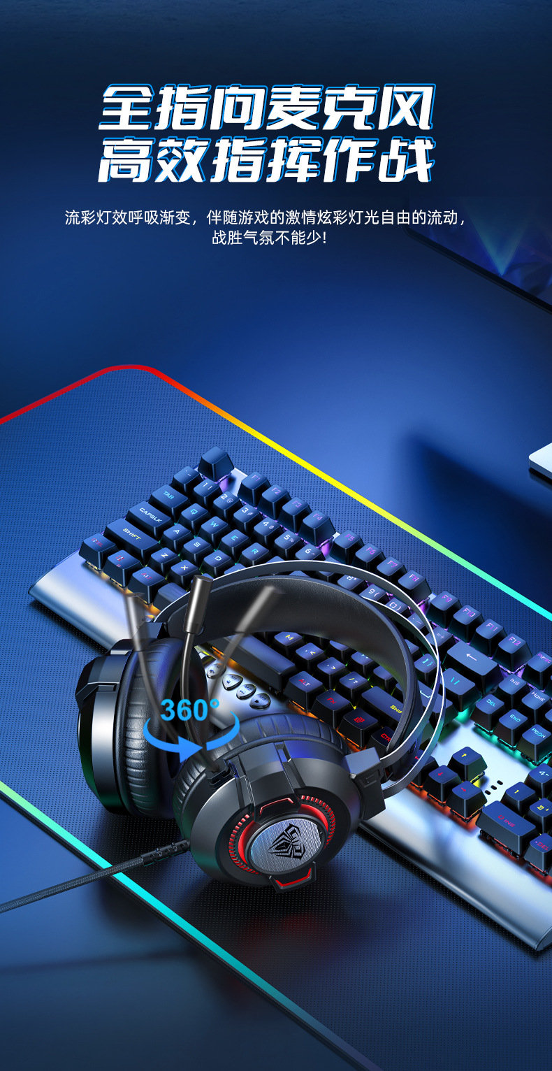 AULA/Tarantula S602 전기 스포츠 헤드셋 게임 치킨을 먹는 밀 USB 헤드셋 데스크톱 컴퓨터 7.1 유선 밀스토어 가기