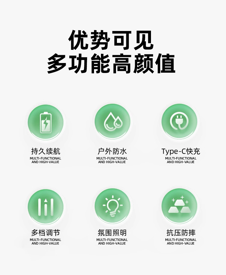 새로운 태양 USB 충전 듀얼 광원 야외 탐조등 실속 조명 야시장 조명 야외 캠핑 조명