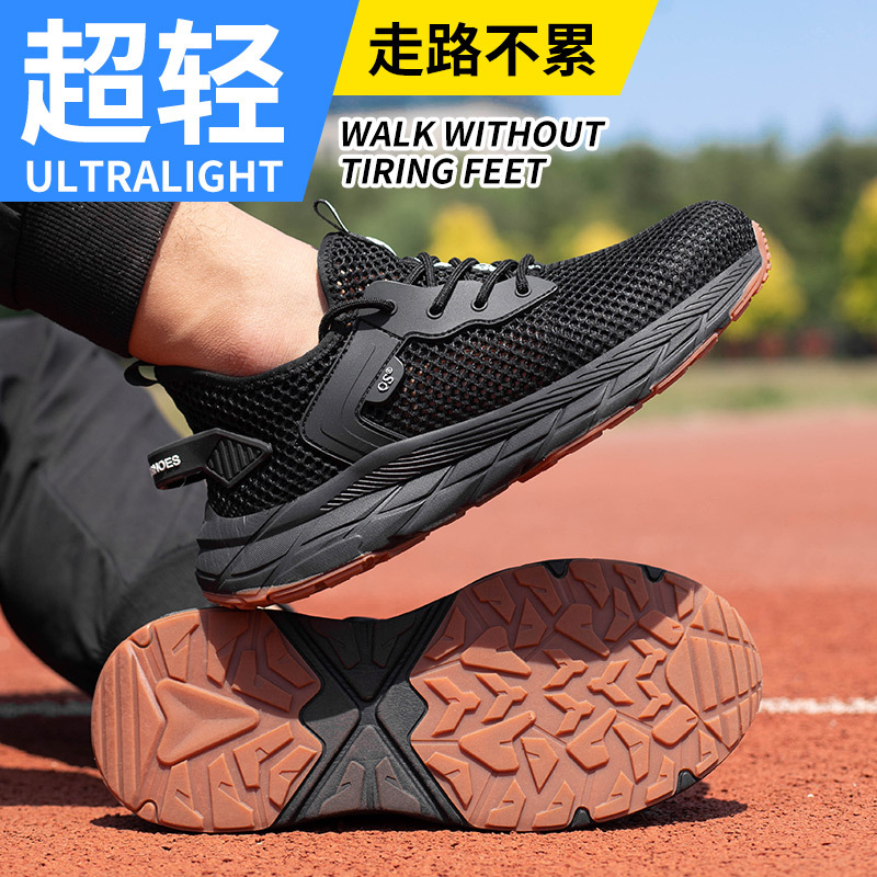 여름용 통기성 및 탈취성 작업화, 강철 발가락, 충격 방지 및 펑크 방지, 가볍고 내마모성 작업화, 남성용 대형 메쉬 작업화