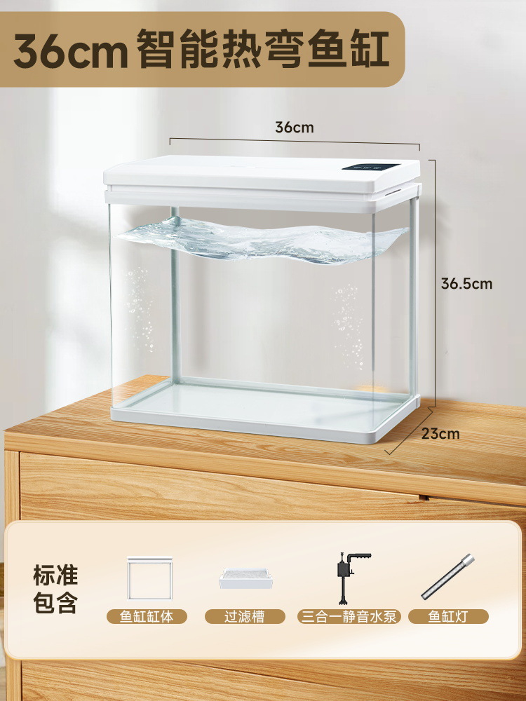 Yee 지능형 뜨거운 곡선 물고기 탱크 거실 테이블 탱크 작은 가정용 자동 순환 필터 통합 수족관 국경