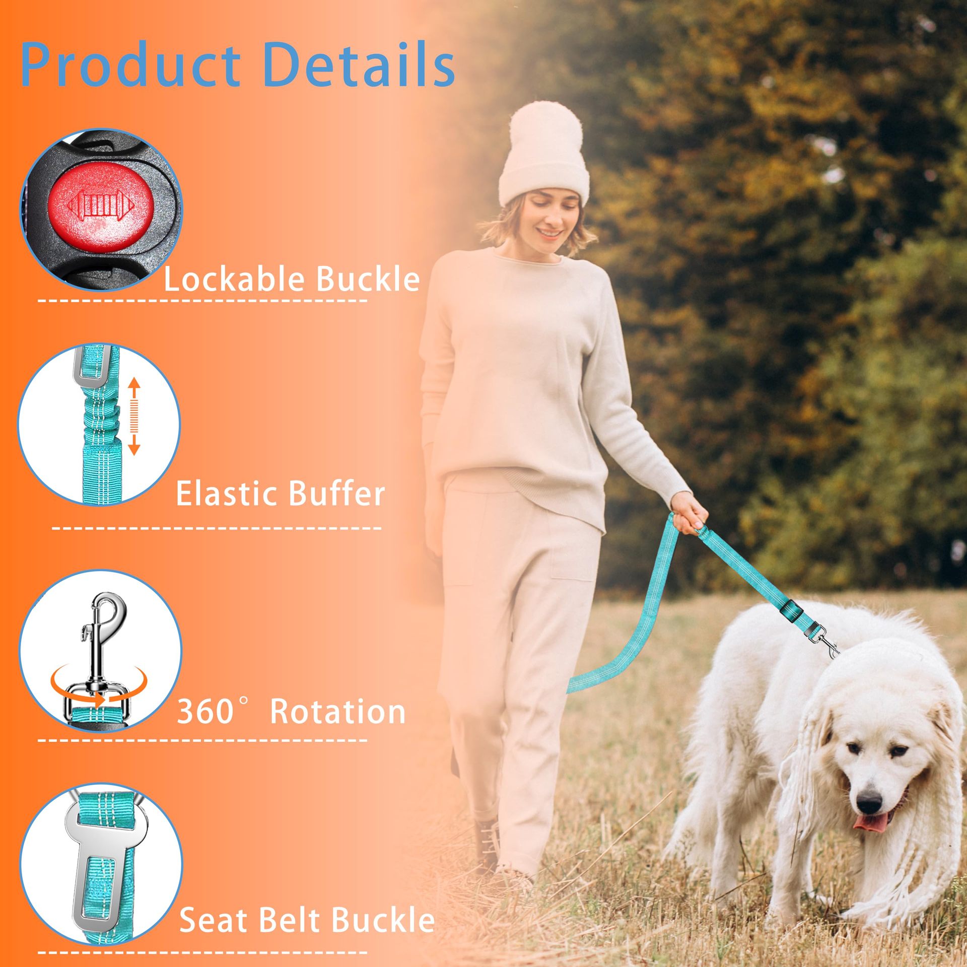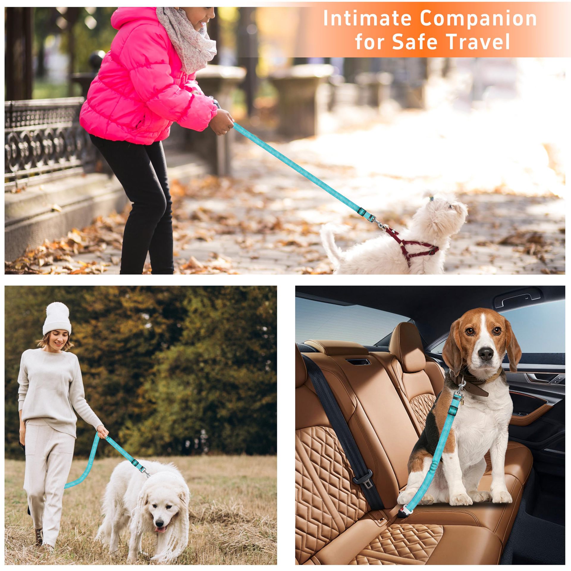 개폐식 개 자동차 시트 벨트 조절 가능한 반사 개 시트 벨트의 3 피스 세트 _ 자동차 머리 받침에 적합스토어 가기