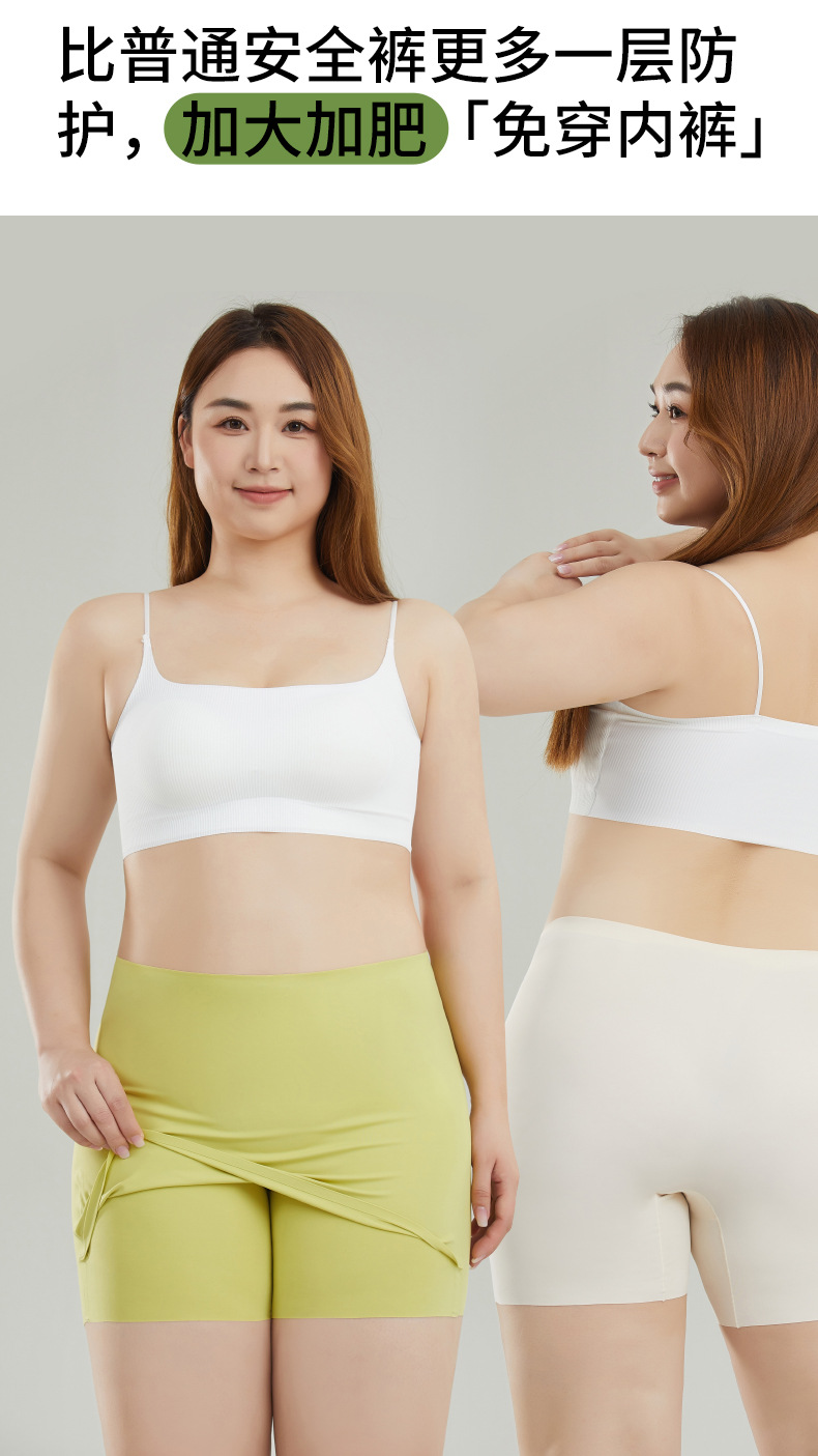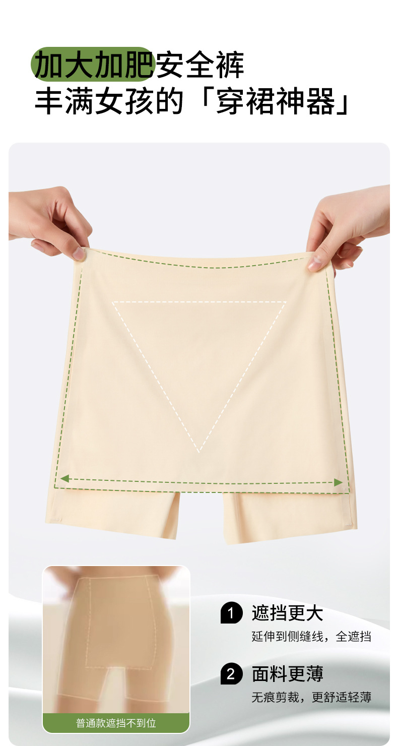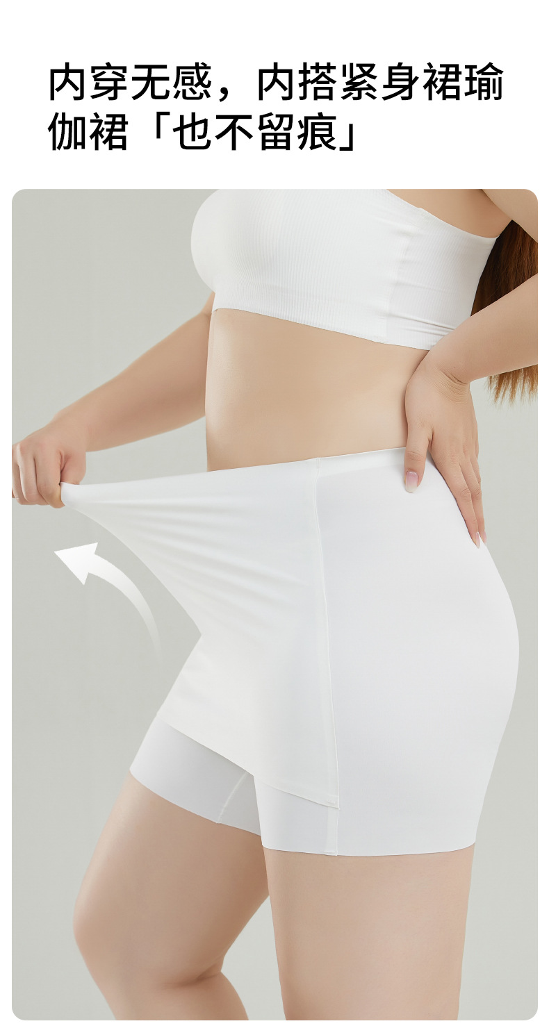 3977 여성용 플러스 사이즈 여름용 얇은 레깅스, 삼각지대를 이중으로 가려주는 안티 노출 레이어드 아이스 실크 안전팬츠