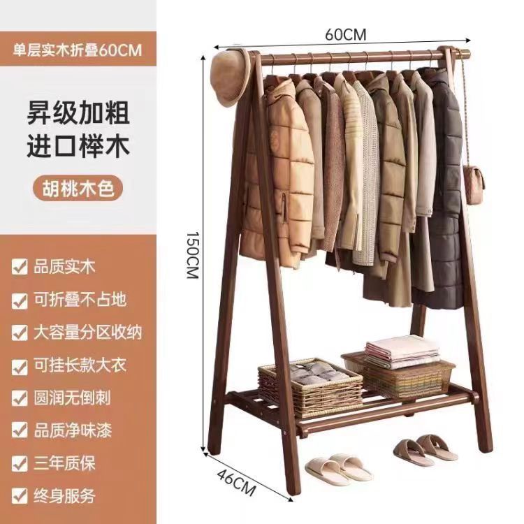 울타리 코트 랙 호두 컬러 너도밤 옷걸이 단단한 나무 바닥 걸이 고급 노르딕 가구 침실 옷걸이스토어 가기