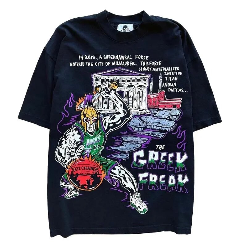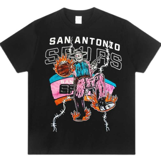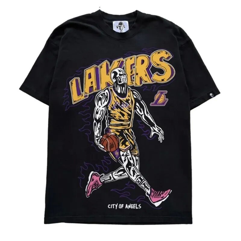 국경 간 전자 상거래 남성 티셔츠 코튼 스트리트 의류 애니메이션 캐주얼 슈퍼 대형 농구 프린트 짧은 소매 탑 티셔츠