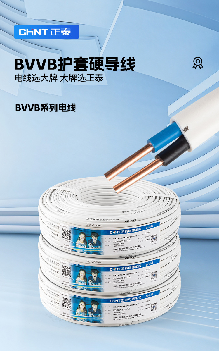 Chint 와이어 2 코어 난연 국가 표준 와이어 구리 코어 BVVB 외장 와이어 1.5/2.5/4/6 평방 하드 코어 가정용스토어 가기
