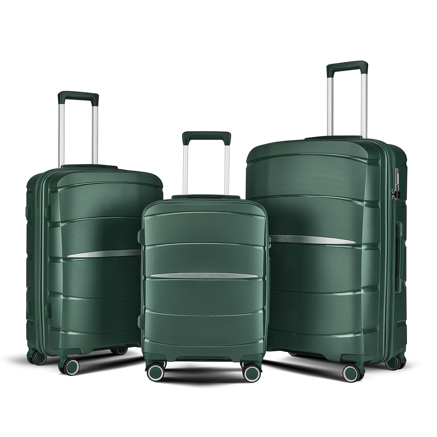 도매 경량 PP 소재 수하물 해외 무역 3 피스 지퍼 케이스 탑승 가방 세관 잠금 레버 수하물스토어 가기