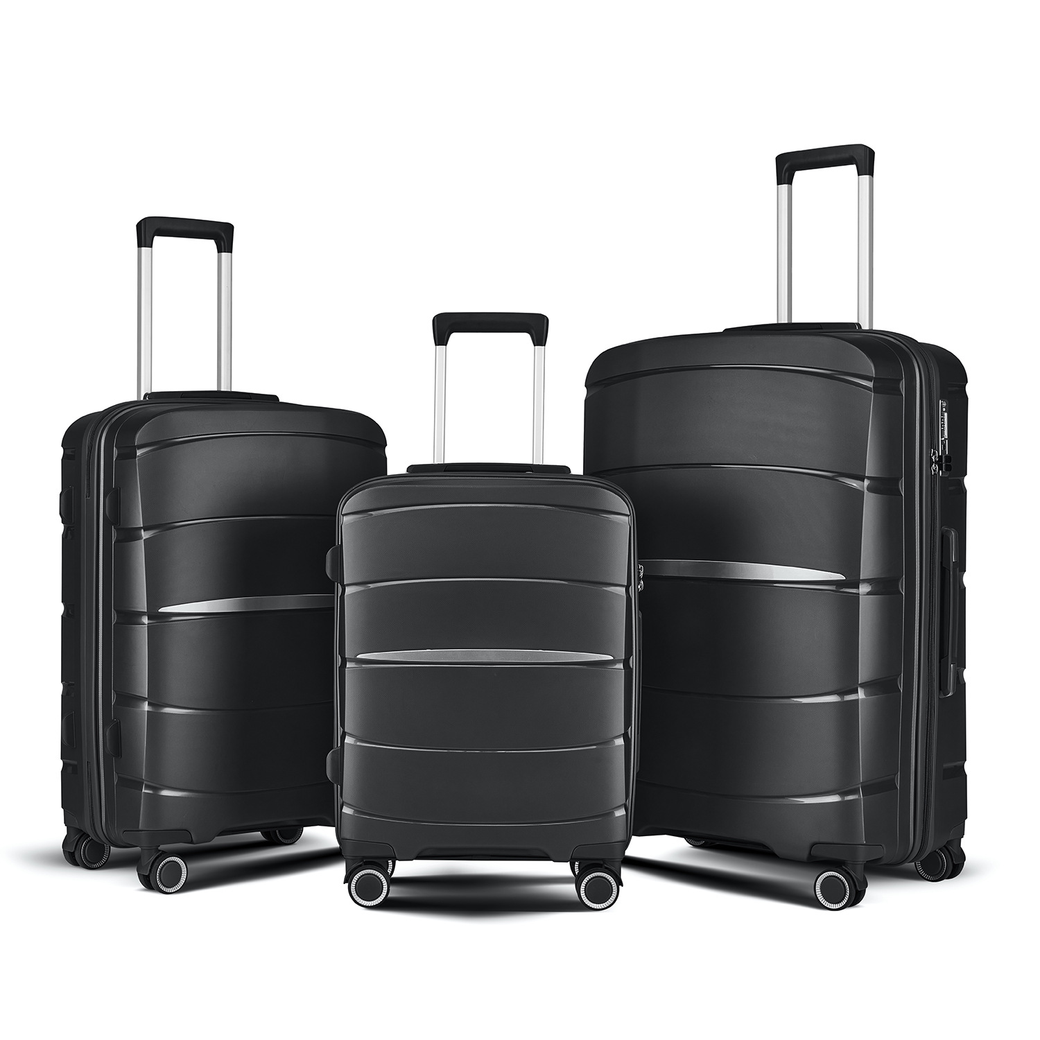 도매 경량 PP 소재 수하물 해외 무역 3 피스 지퍼 케이스 탑승 가방 세관 잠금 레버 수하물