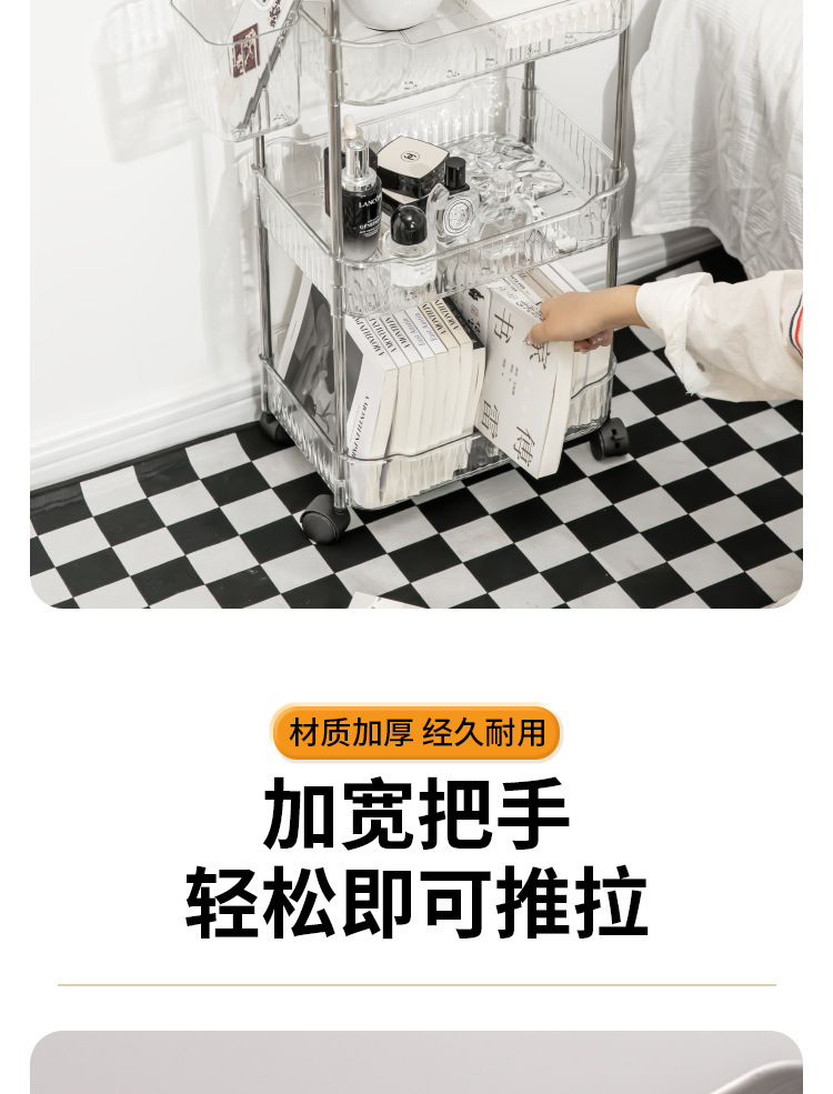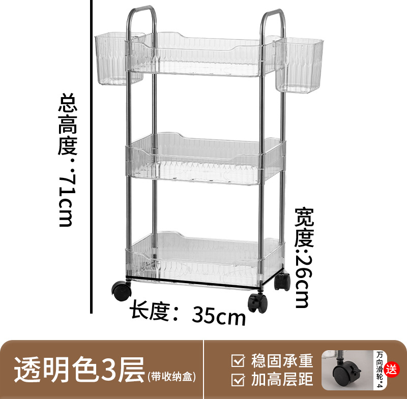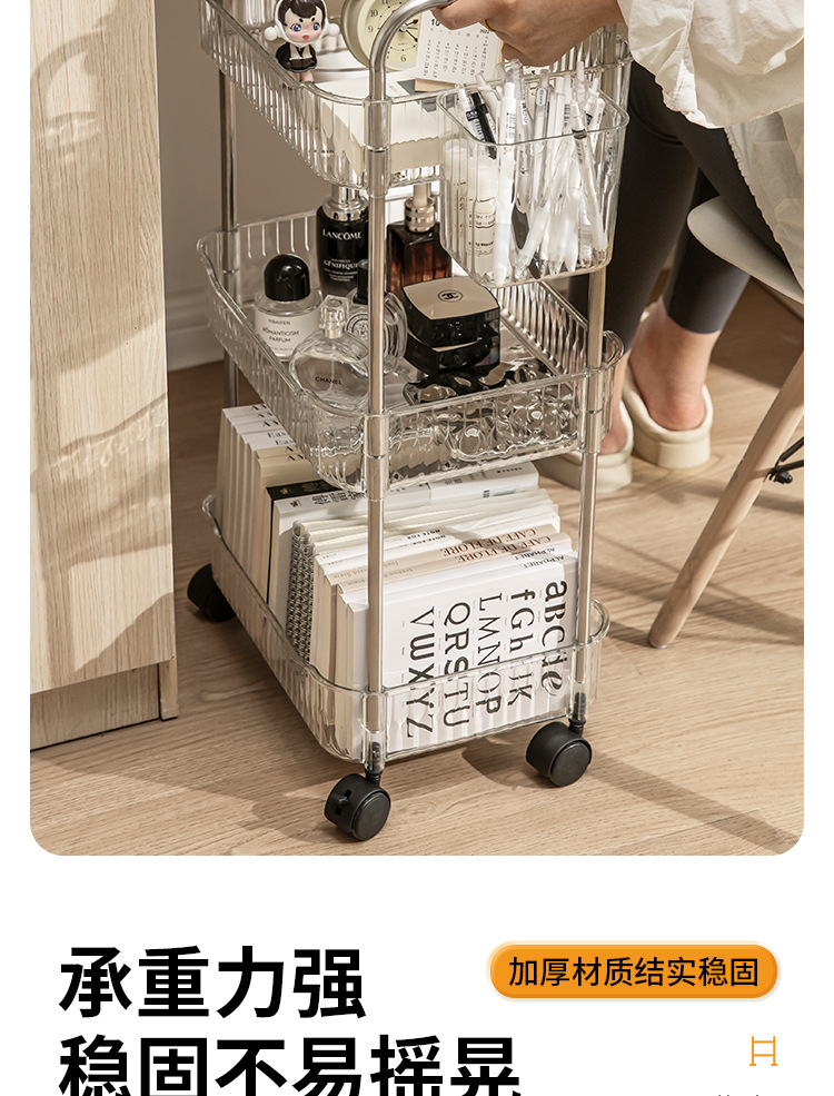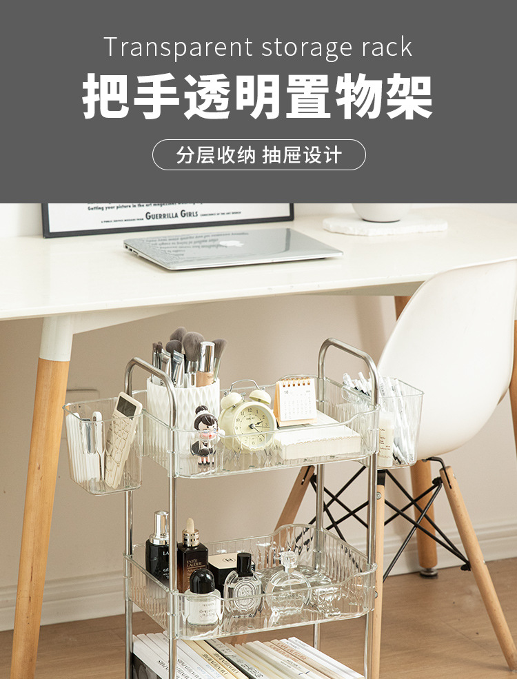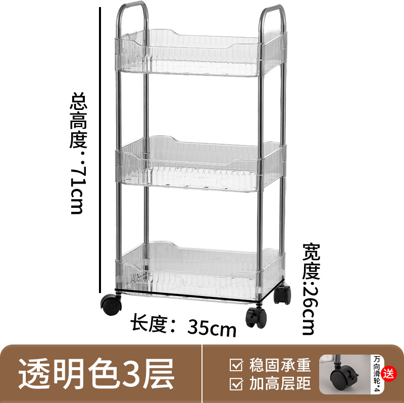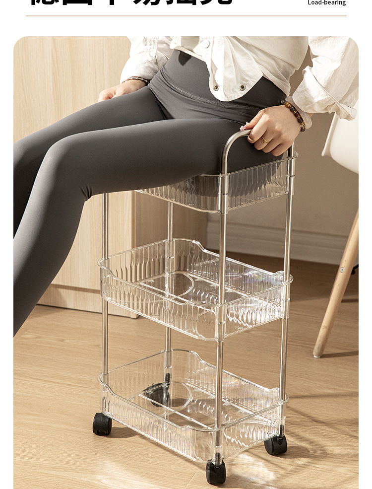 아크릴 트롤리 투명 바닥 스탠딩 스토리지 랙 가정용 다층 스토리지 랙 핸들 침실 이동식 스토리지