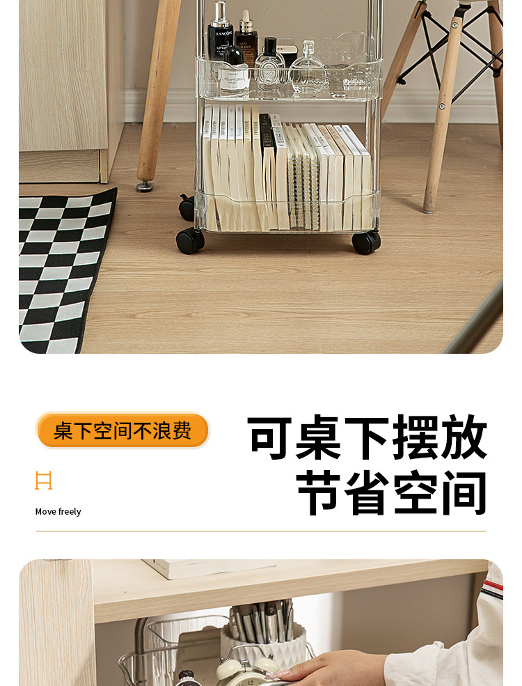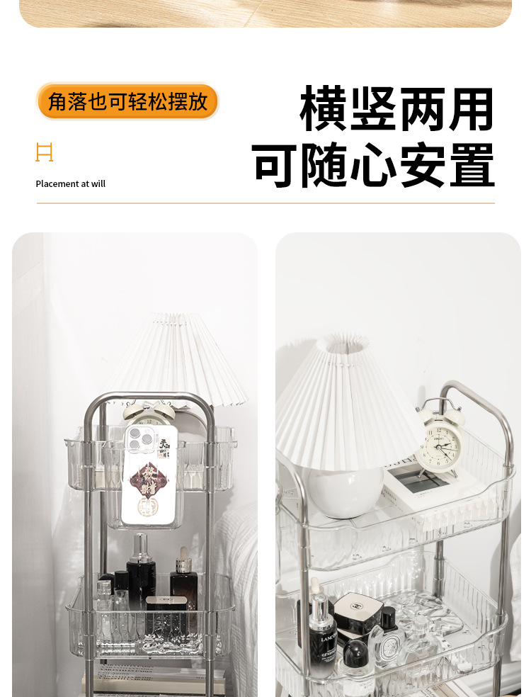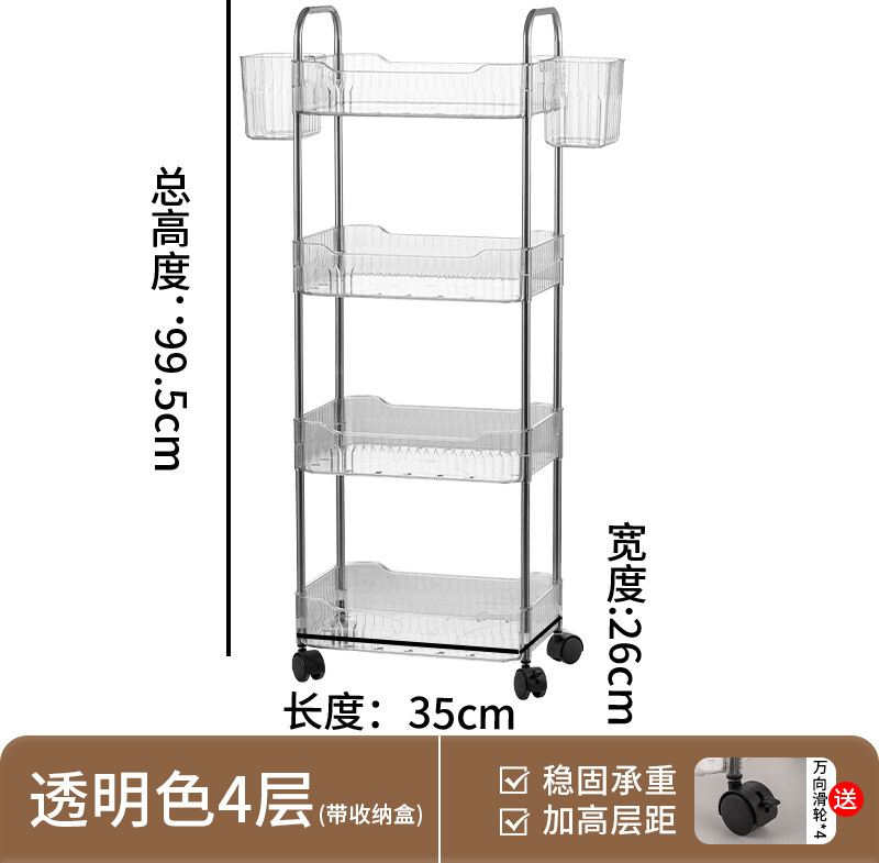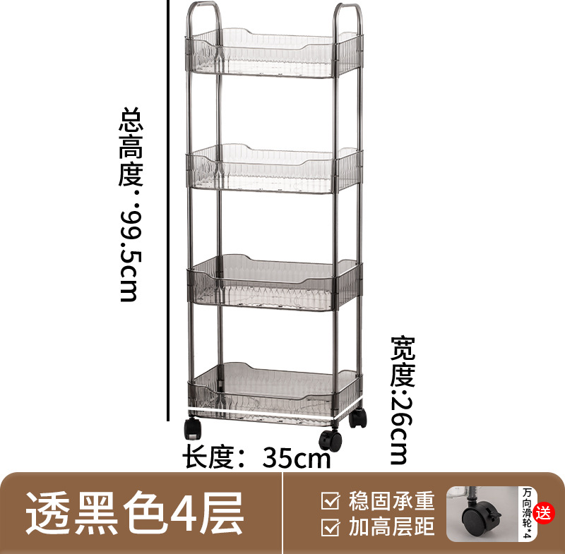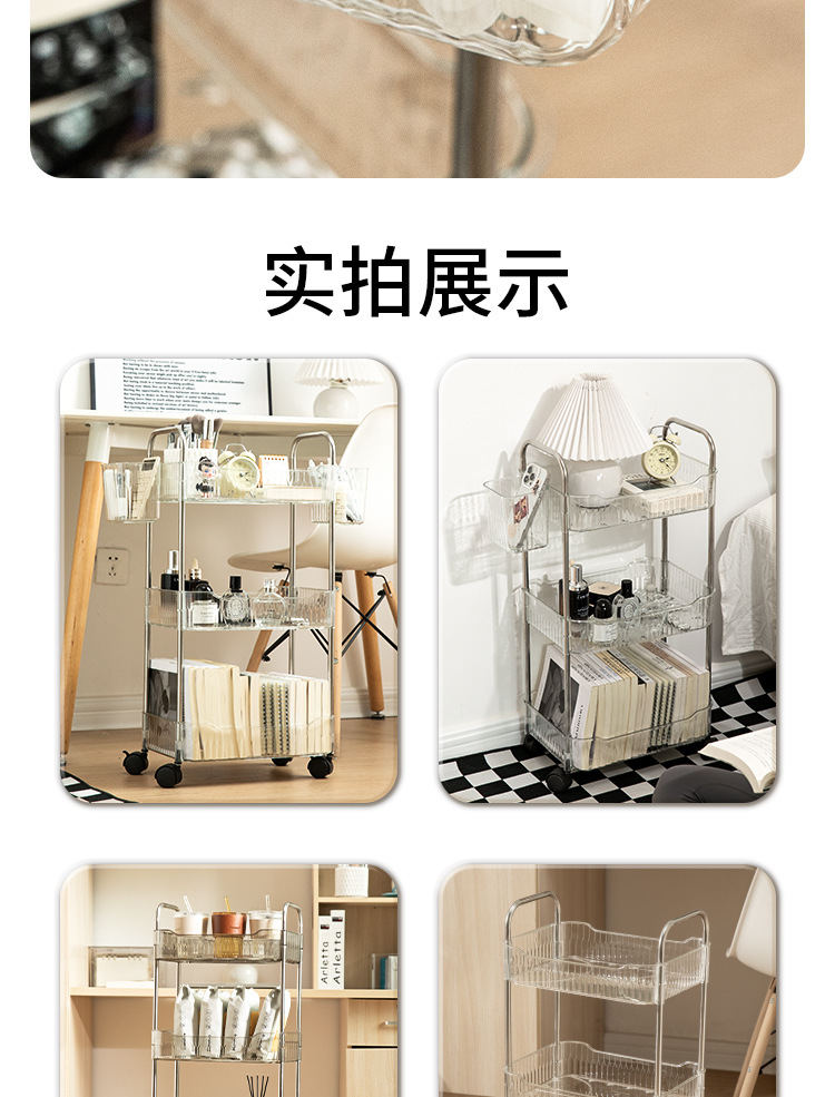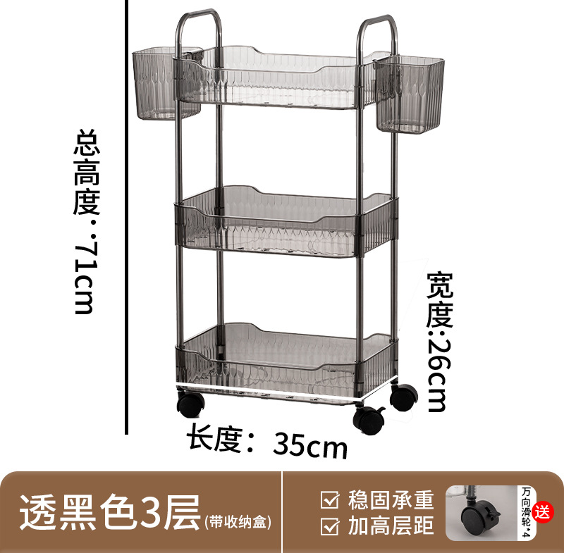 아크릴 트롤리 투명 바닥 스탠딩 스토리지 랙 가정용 다층 스토리지 랙 핸들 침실 이동식 스토리지