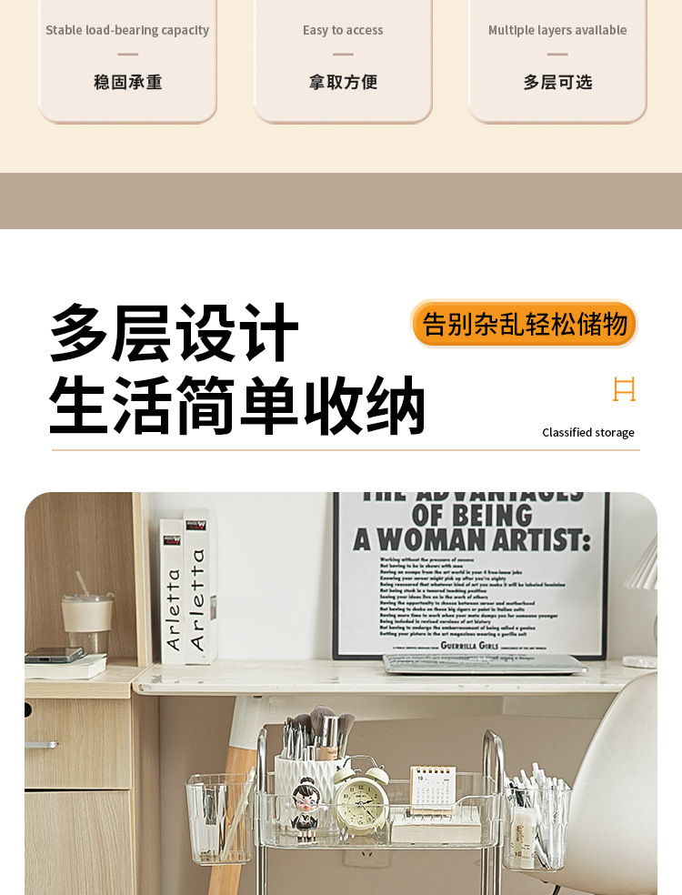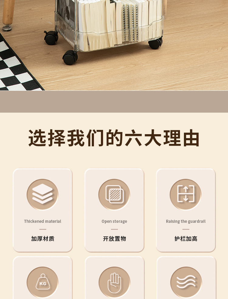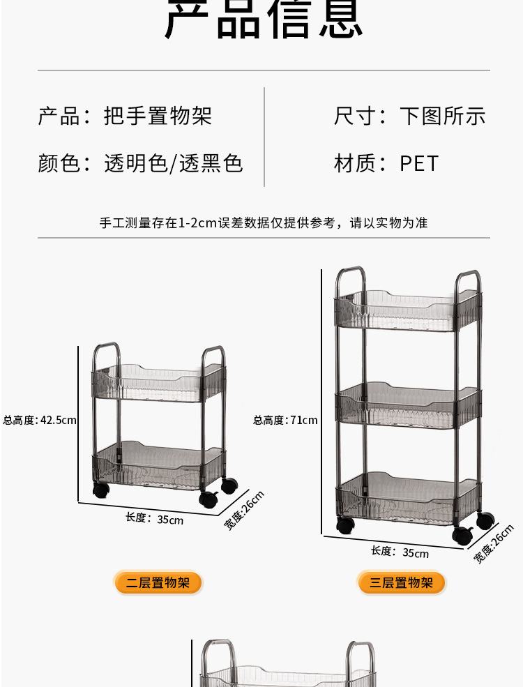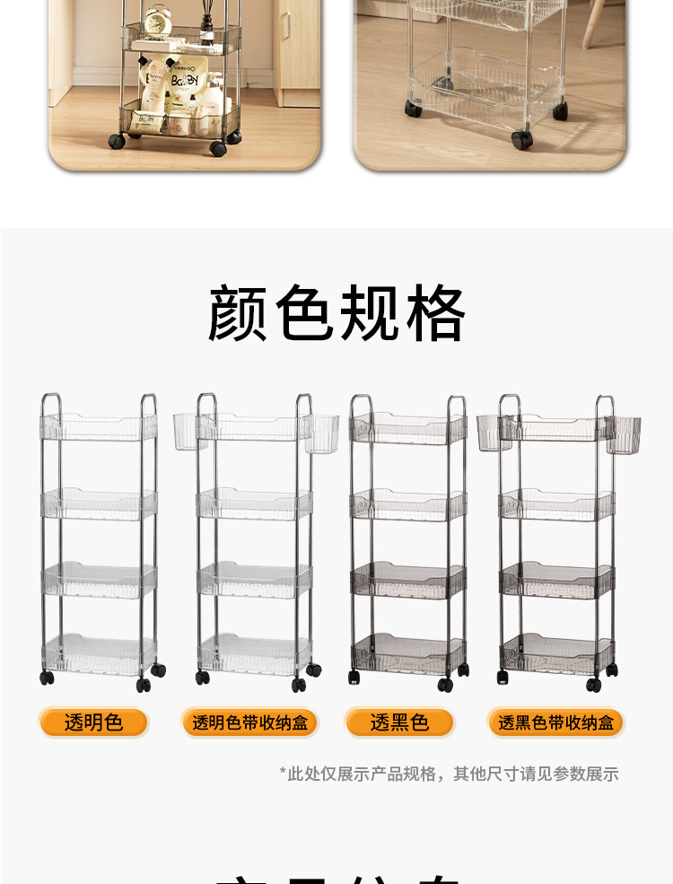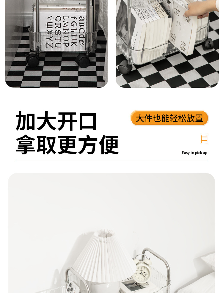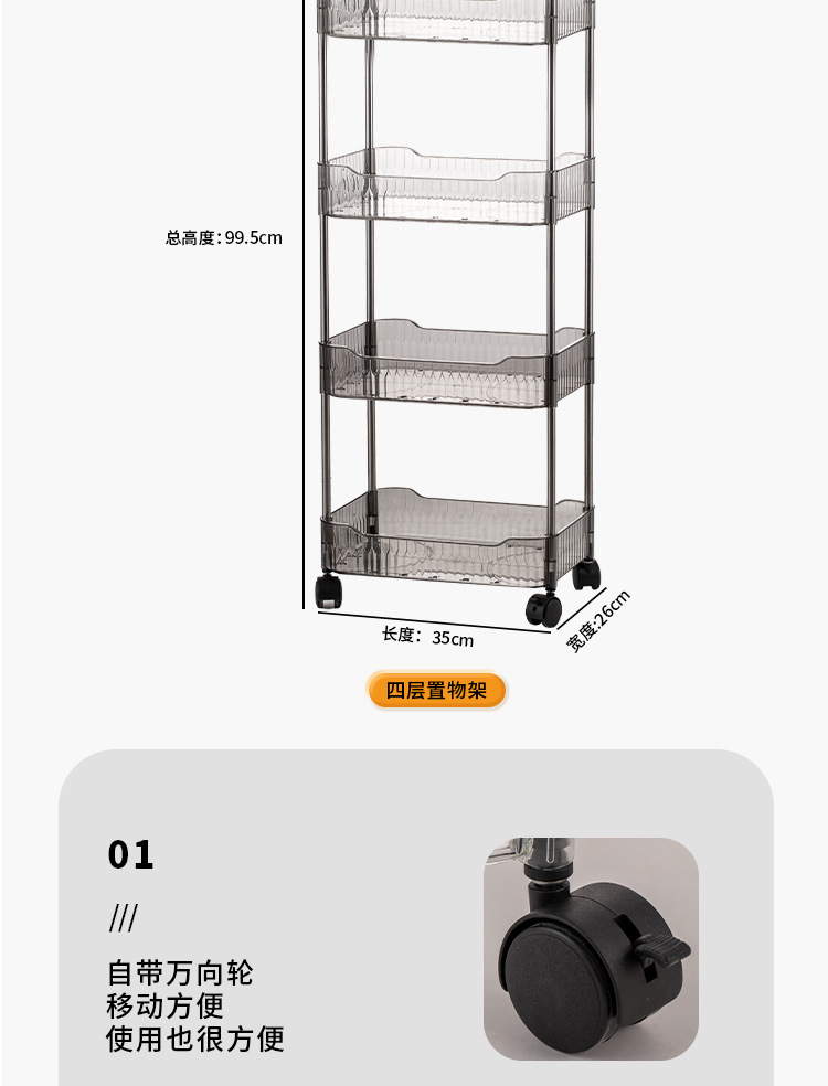 아크릴 트롤리 투명 바닥 스탠딩 스토리지 랙 가정용 다층 스토리지 랙 핸들 침실 이동식 스토리지
