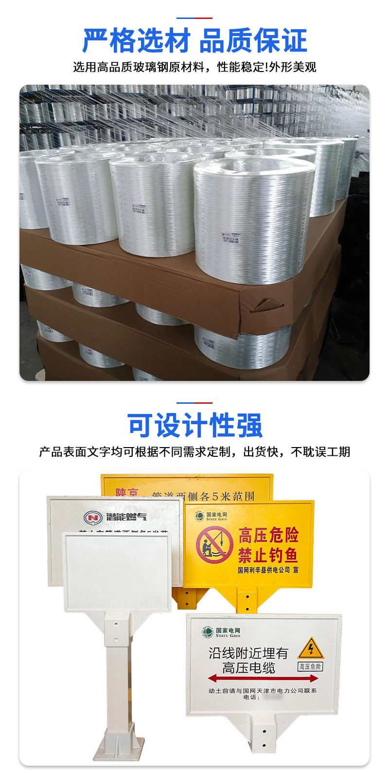 유리 섬유 강화 플라스틱 전원 장비 경고 파일 매장 된 가스 저장소 케이블 마킹 파일 유리 섬유 강화 플라스틱 마킹 파일스토어 가기