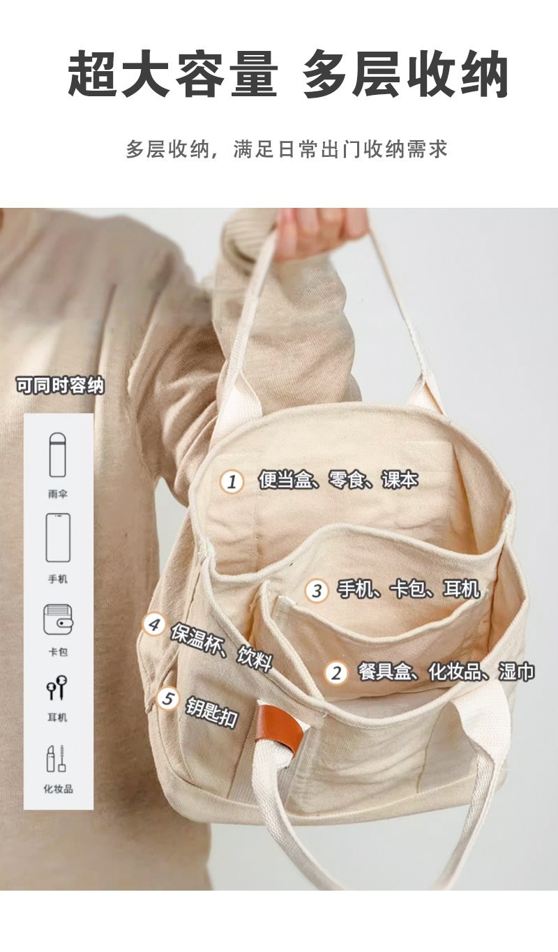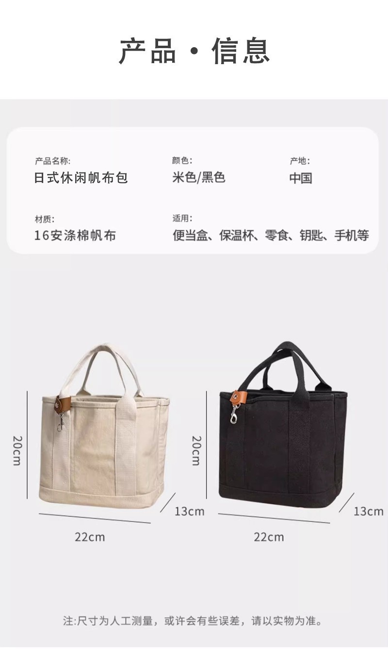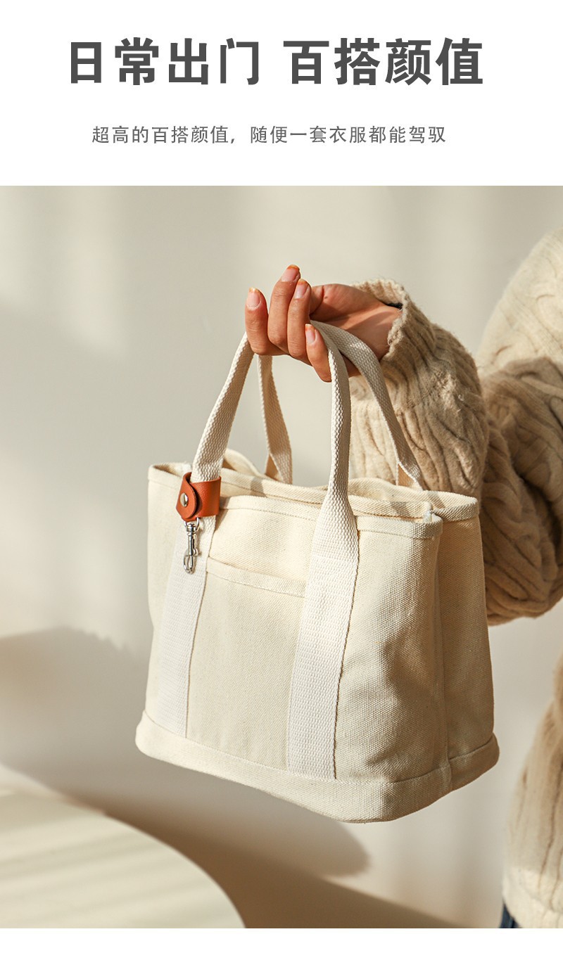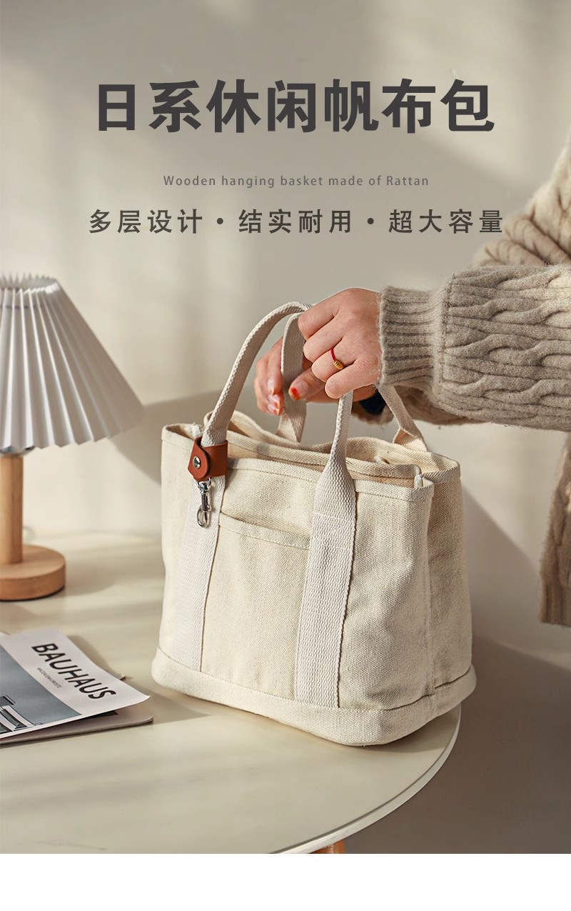 일본식 캐주얼 캔버스 가방 여성의 손 도시락 점심 가방 대용량 핸드백 미라 가방 통근 보관 가방스토어 가기