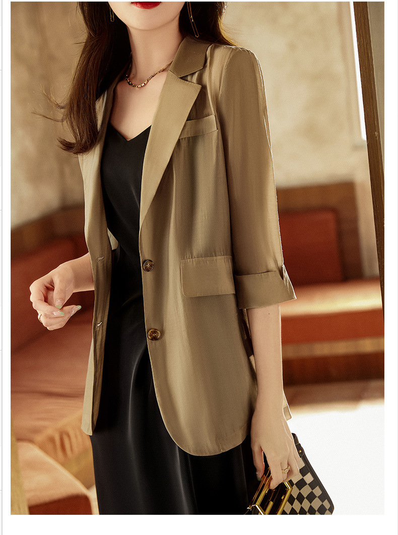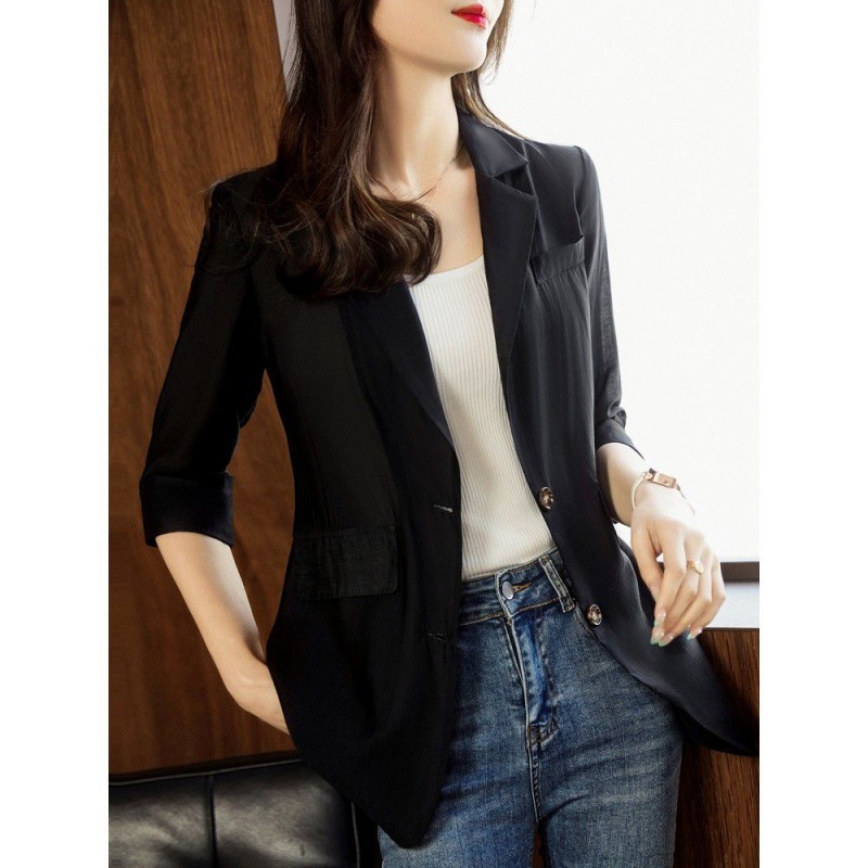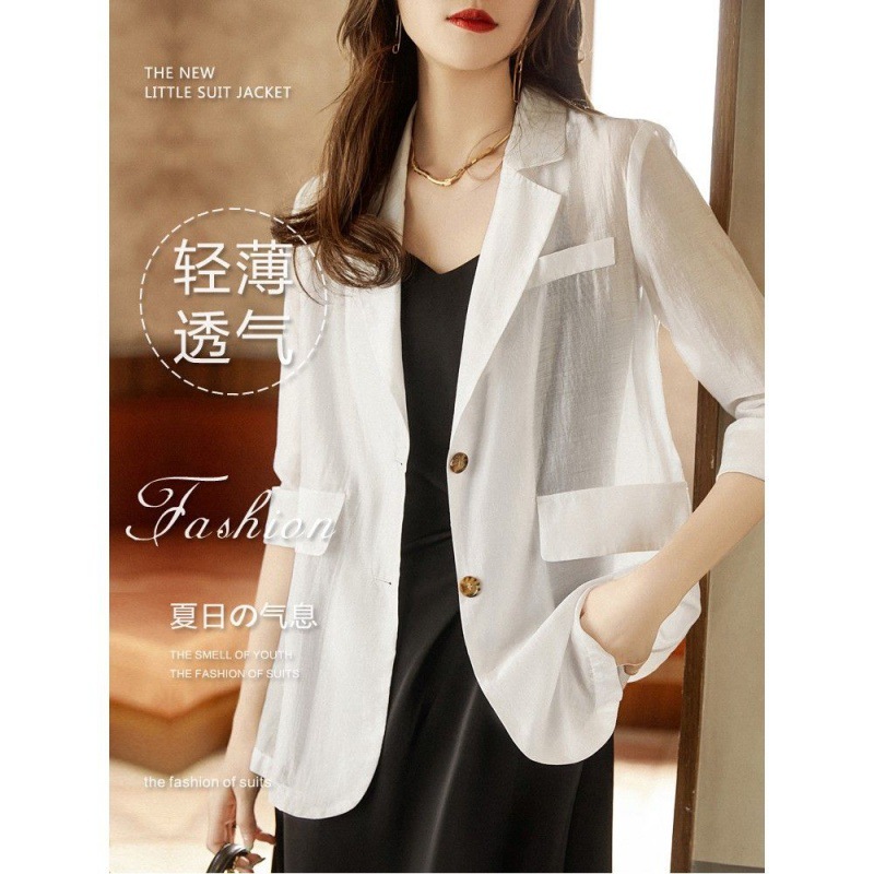 2024 봄과 여름 얇은 세트 재킷 여성 디자인 센스 틈새 패션 우아한 느슨한 쉬폰 선 스크린 셔츠스토어 가기