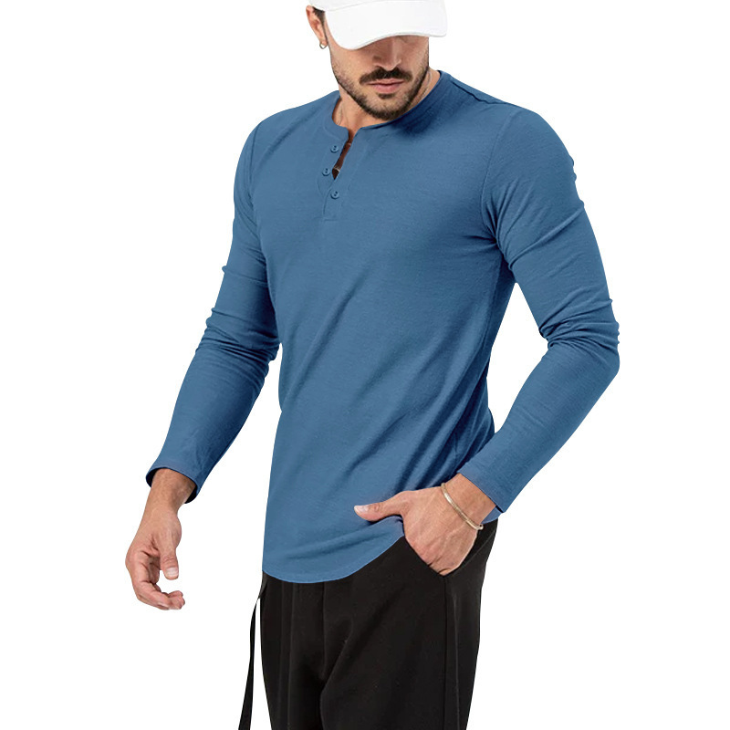 유럽 및 미국 스타일 반팔/긴팔 헨리넥 레트로 터프맨 스타일 슬림핏 라운드넥 티셔츠/베이스 레이어스토어 가기