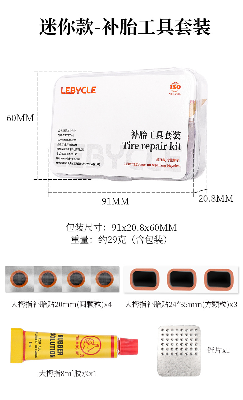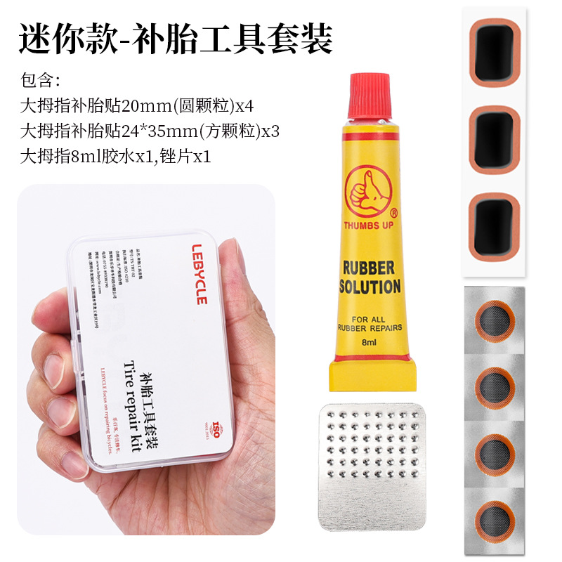 LEBYCLE 미니 타이어 수리 도구 세트 산악 및 로드 자전거 내부 타이어 패치 접착제 필름스토어 가기
