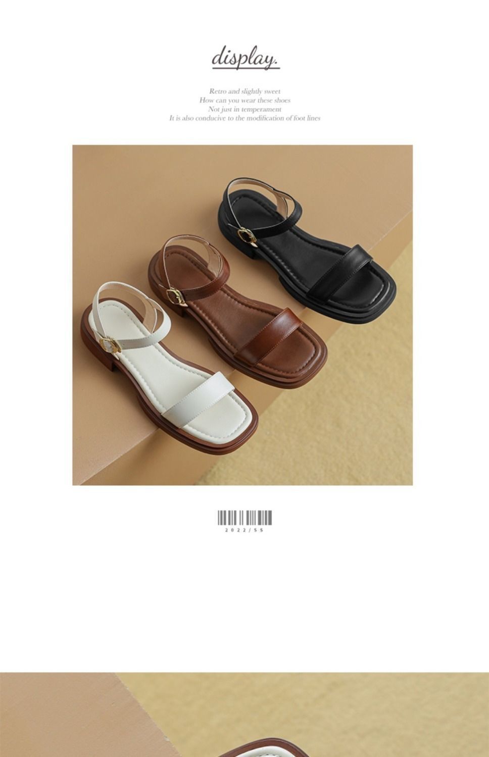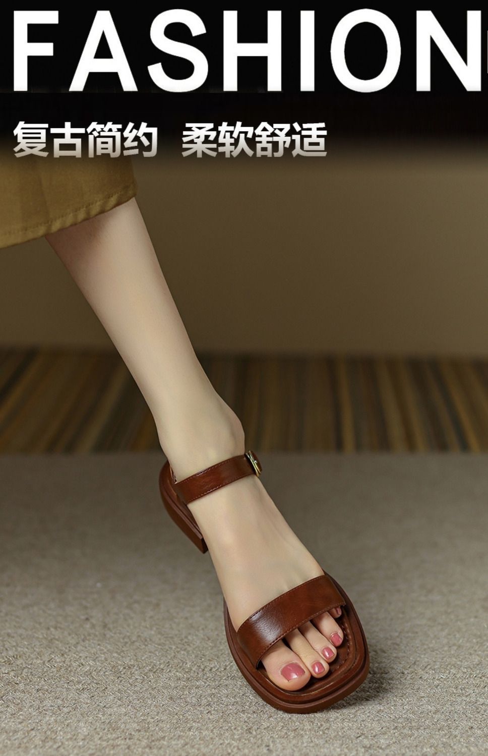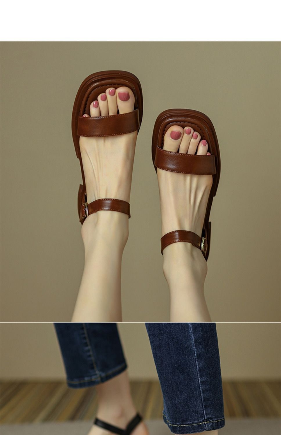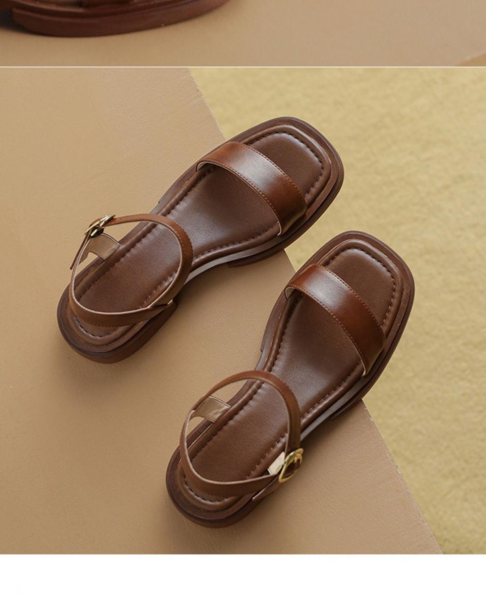 빈티지 심플 스타일 샌들 로마 스타일 여성용 플랫 소프트 두꺼운 오픈 토 비치 Ins 올 매치 편안한 샌들
