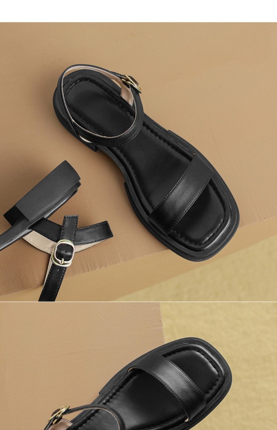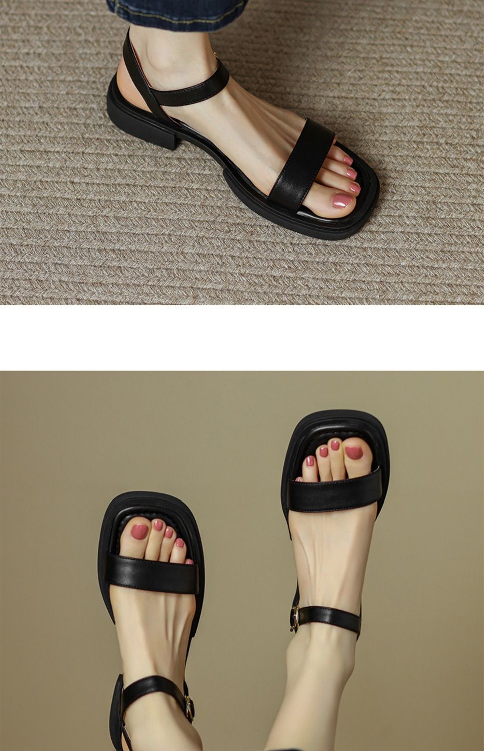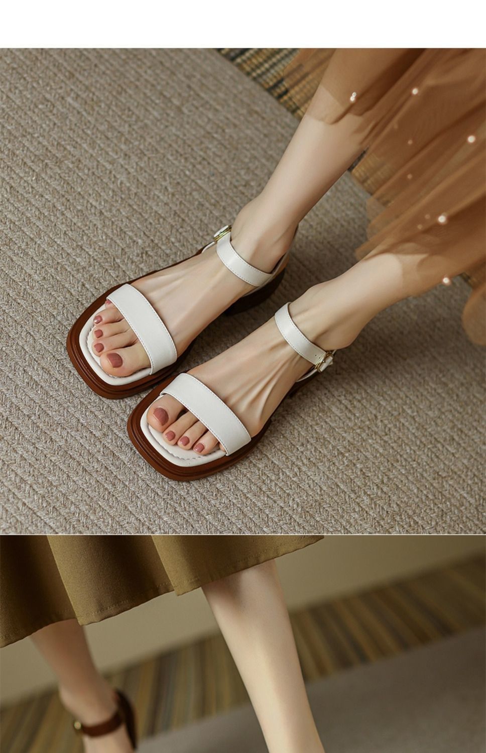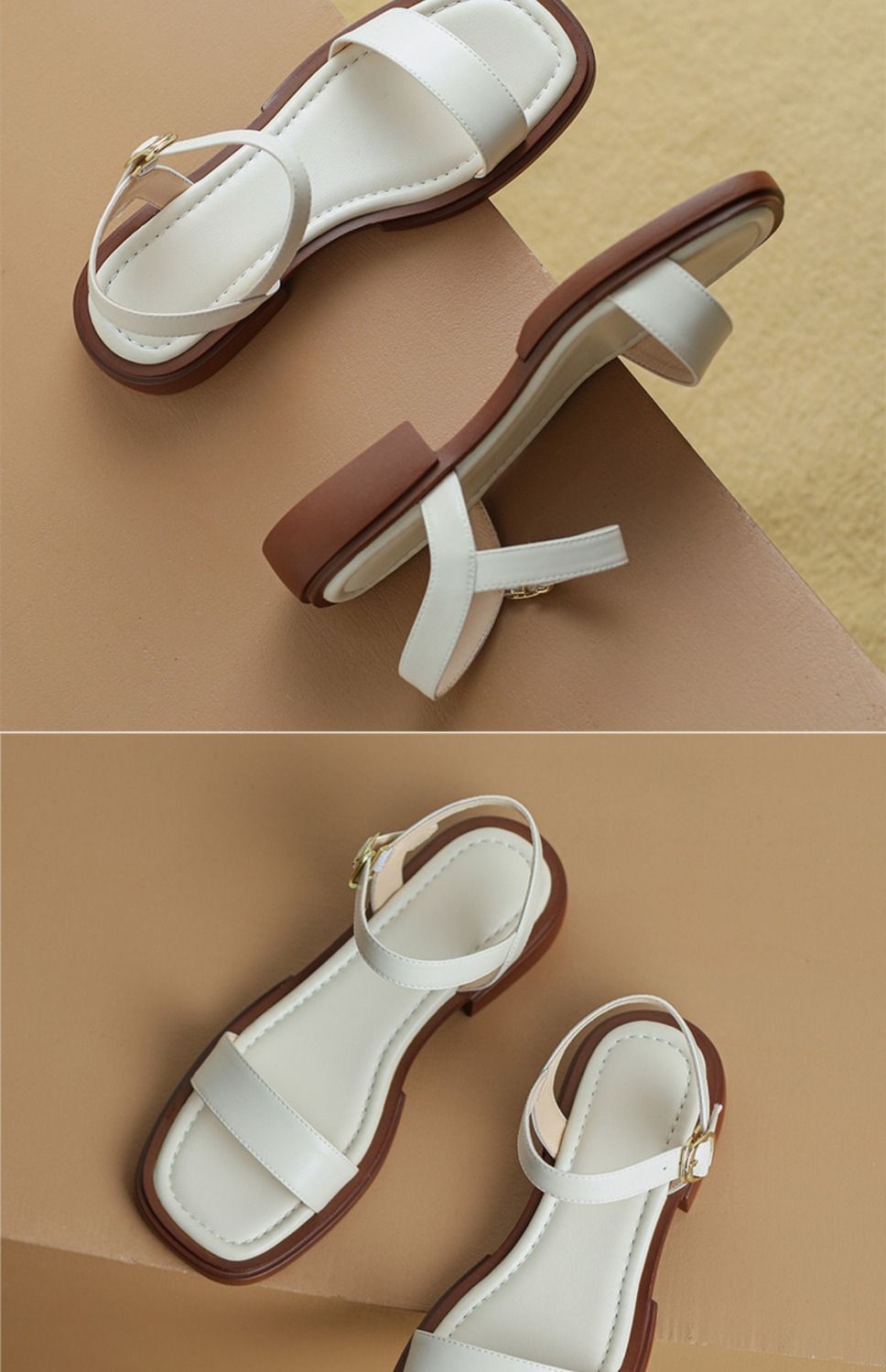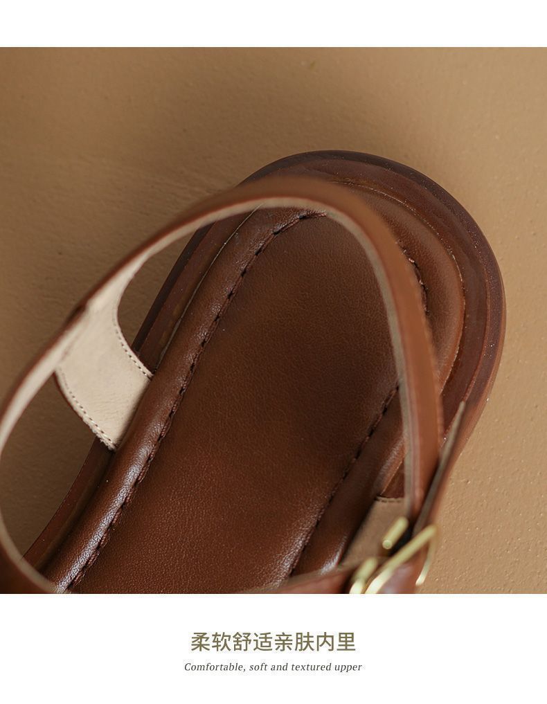 빈티지 심플 스타일 샌들 로마 스타일 여성용 플랫 소프트 두꺼운 오픈 토 비치 Ins 올 매치 편안한 샌들